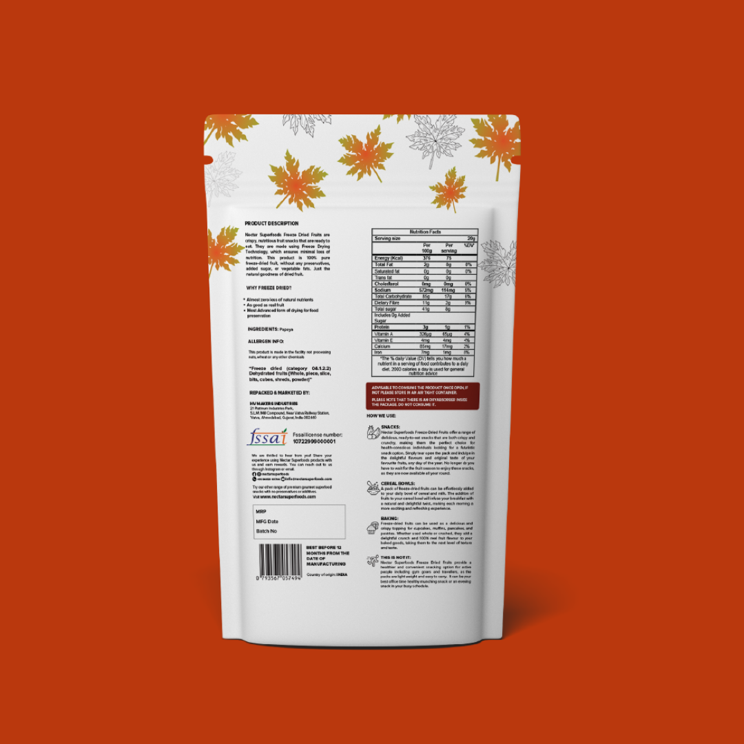 No Loss of Nutrition : As freeze drying saves almost 90-98%* of nutrients of the raw fruit used the need for nutrition is taken care of.