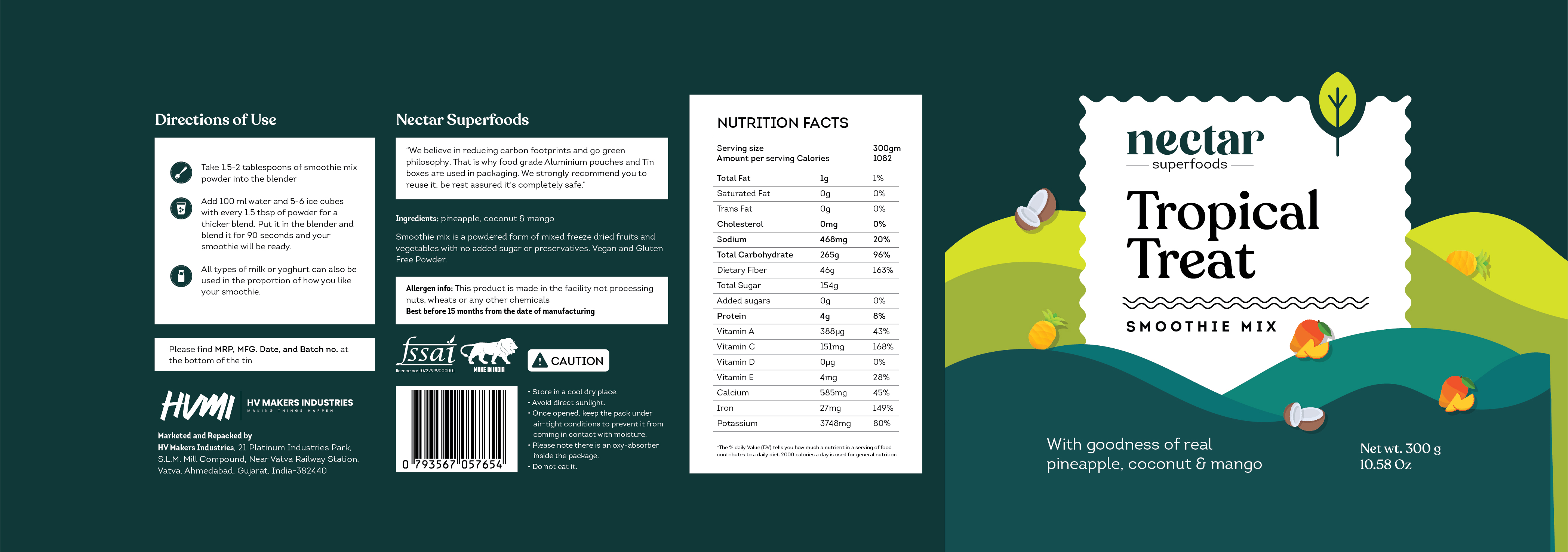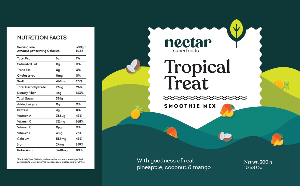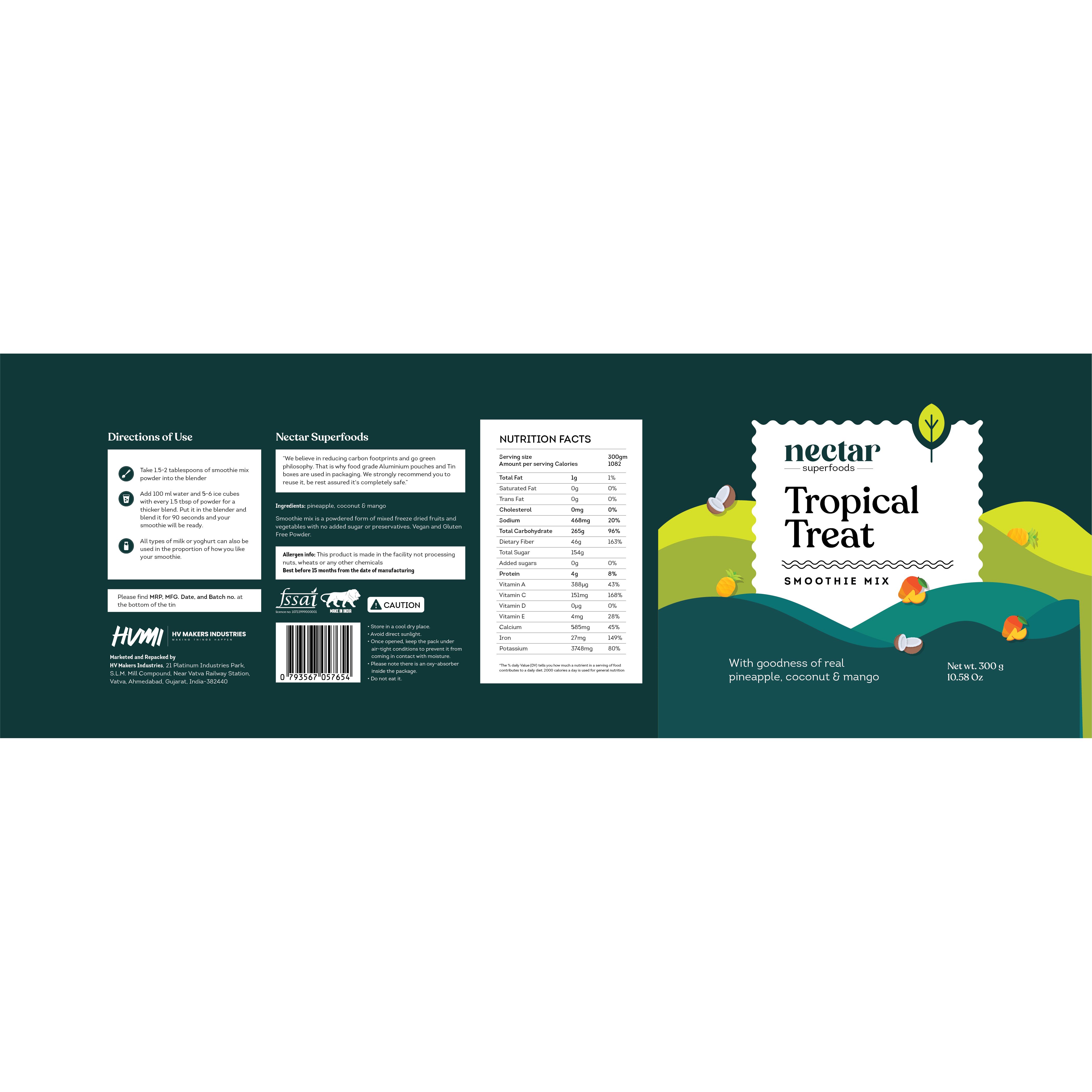 Nectar Superfoods Freeze Dried Smoothie Mixes are just real dried fruit powder only. No sugar or artificial sweeteners added. It just has the natural sweetness of the fruit. Powders are made from dried fruits using state of the art freeze drying technology.