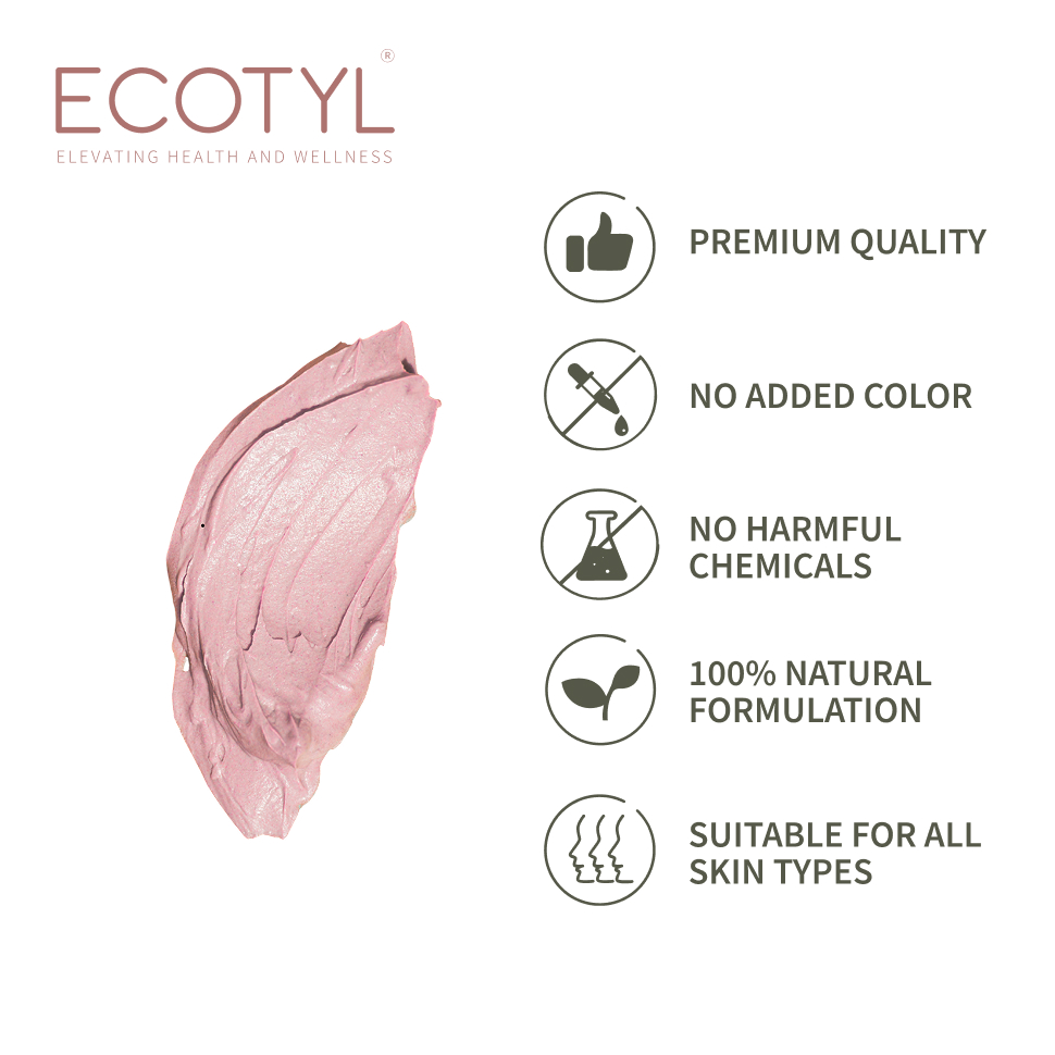 Ideal for sensitive, dull, or mature skin, Ecotyls French Pink Clay supports skin renewal, calms inflammation, and restores softness. Its a versatile self-care essential that doubles as a revitalizing face mask and a purifying body treatment making it a wholesome addition to your beauty rituals.