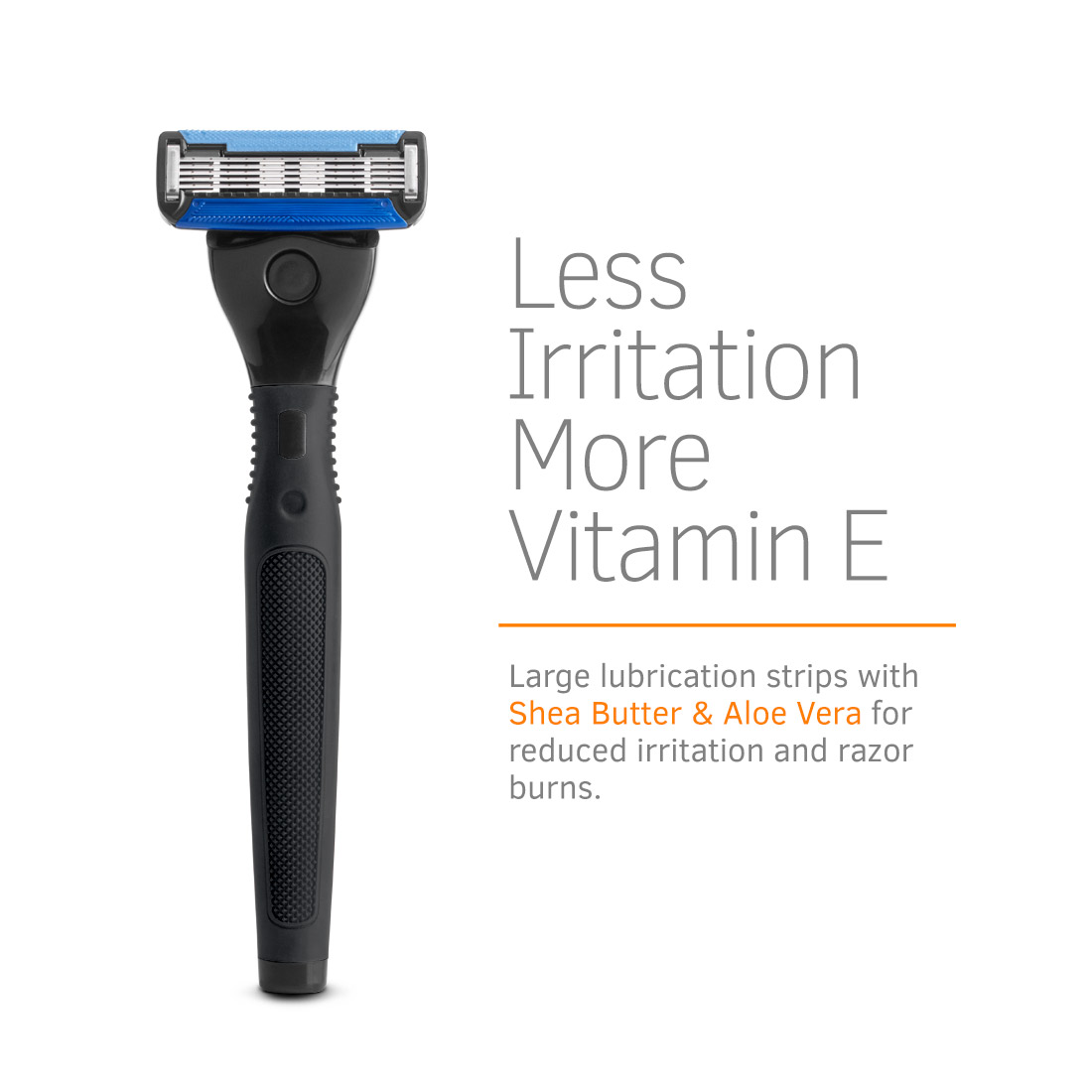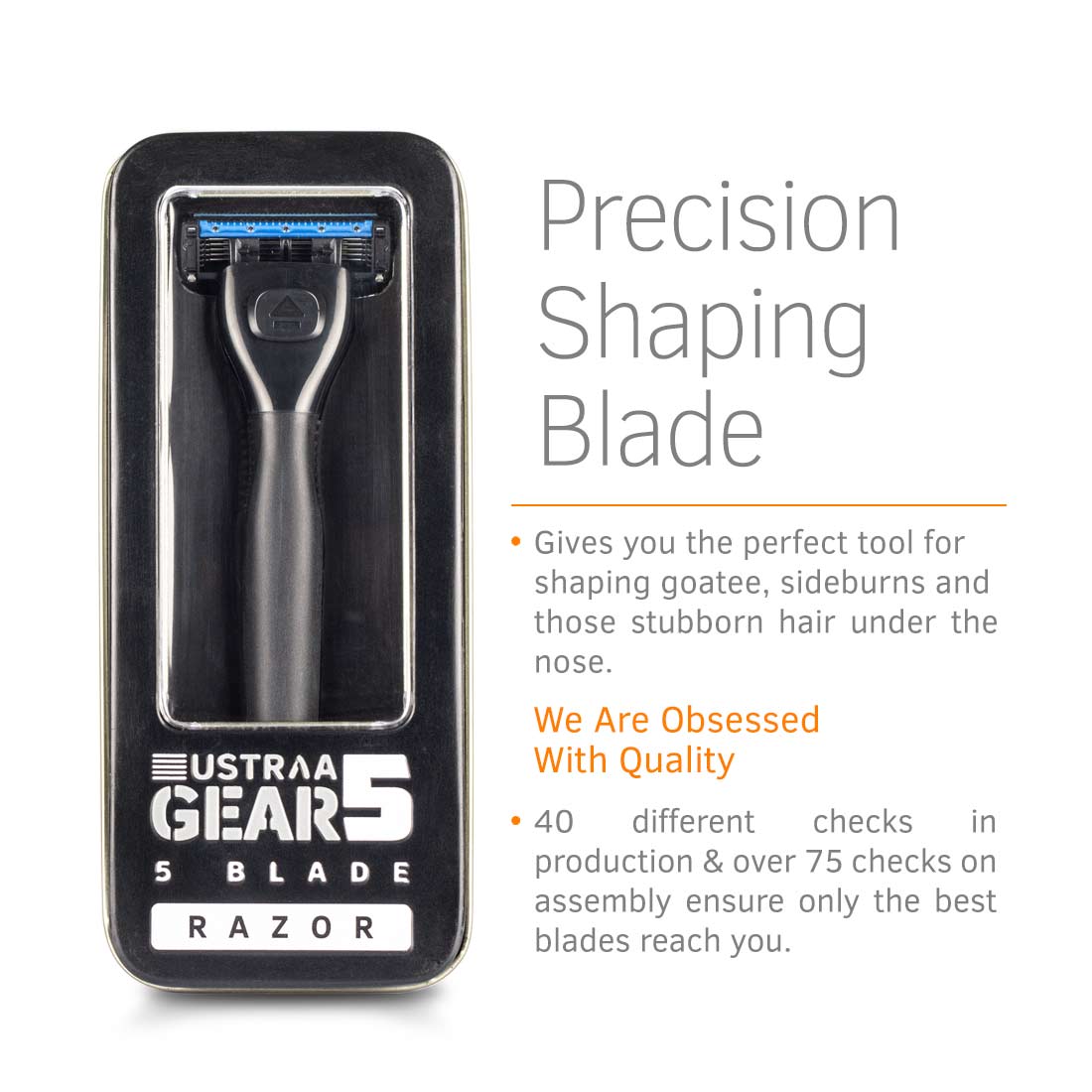 These 5 blade cartridges with double coated blade edge give you a really close shave. Large lubrication strip, rich with shea butter and aloe vera reduces redness and post-shave irritation. The precision trimmer blade at the back is ideal for shaping your goatee or sideburns. The contoured rubber handle gives you better balance and control reducing the chances of nicks and cuts. Made in the state of the art plant in the USA, our blades come to you after passing through quality control tests. Each blade undergoes 40 different checks in production and over 75 checks in assembly to ensure that only the best blades reach you.