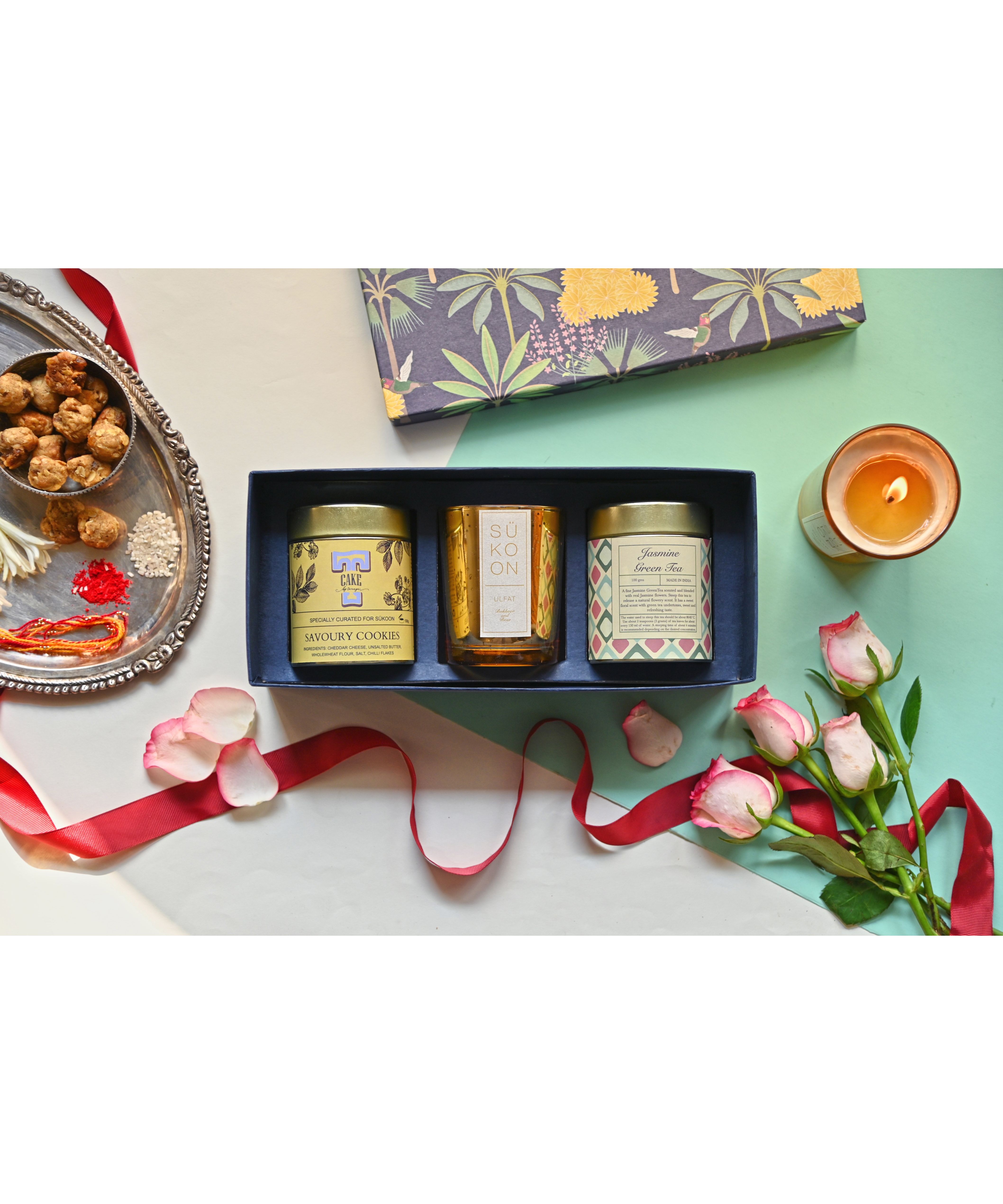 Unwind and indulge with our handpicked gift for a cosy night in from organic infusion to cookies and artisan candles. The box comes with Sükoons tea tin, cookie tin and candle. Includes:
