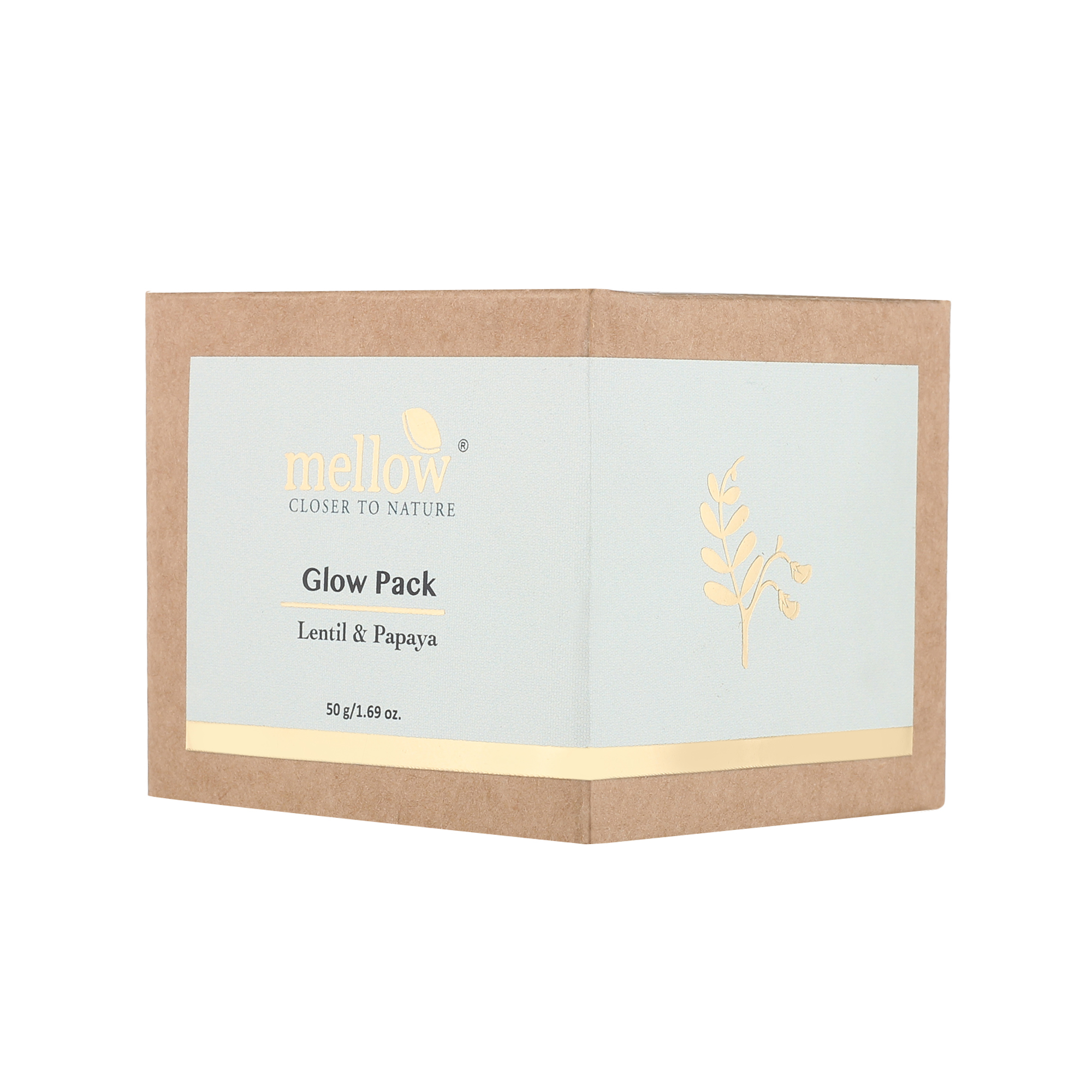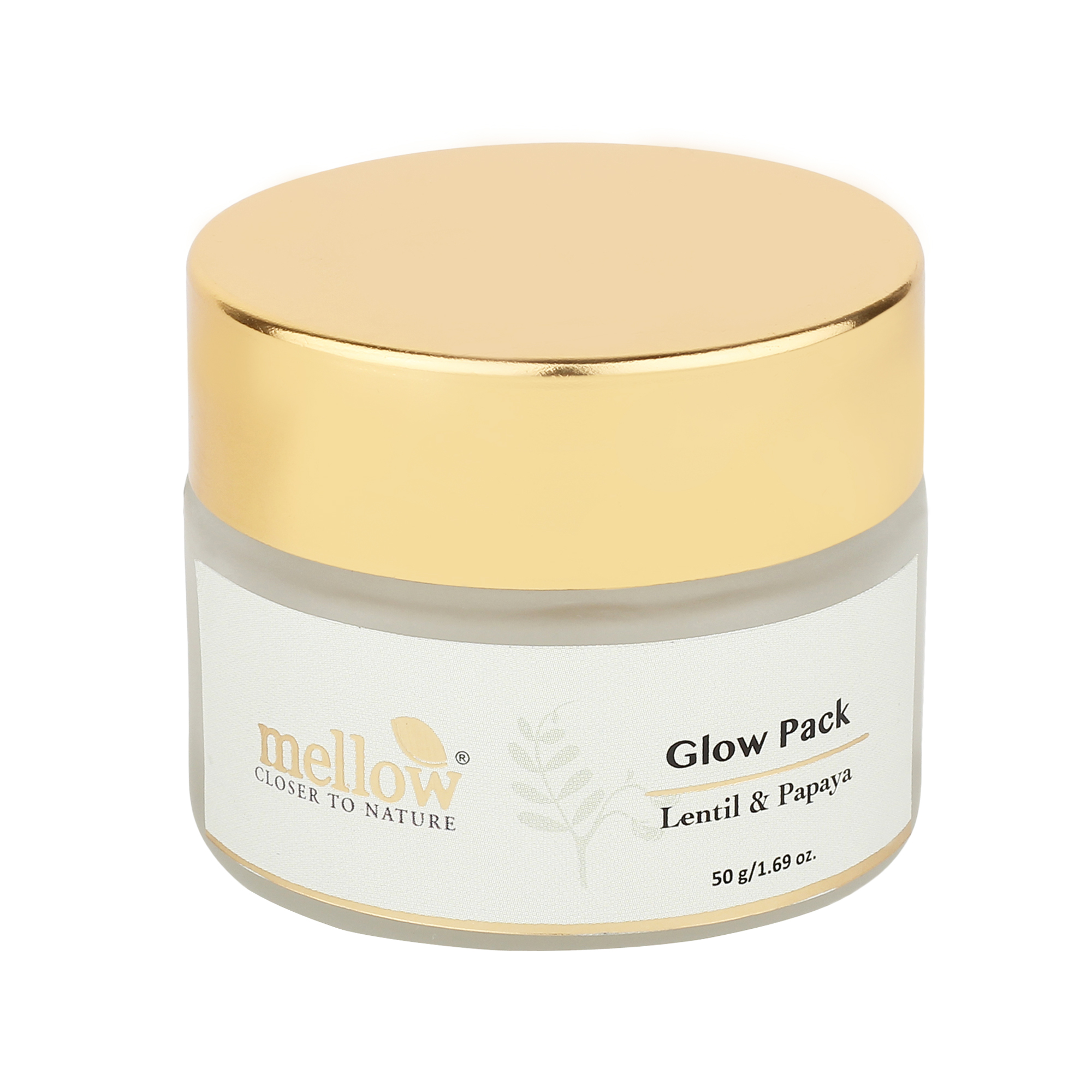 Get irresistibly glowing skin with Mellows Glow Pack. Enriched with nutrients of oat grains, the pack helps to restore the moisture and exfoliates the dead skin. Almond Oil has a high nutritious value that treats skin to make it soft, enhances the glow, and removes wrinkles. The pack has papaya, which contains papain enzymes, to get rid of clogged pores. Wheat-germ oil provides enough Vitamin B to your skin. Get glowing skin that is irresistible to touch with Mellow"s Glow Pack. Made with natural ingredients like oat grains, almond oil, papaya, and wheat-germ oil, the glow pack nurtures your skin and adds radiance.
