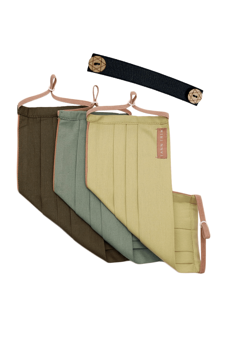This product is made with 100% premium cotton, hand-crafted, breathable and reusable with signature details of tann colour piping and high quality elastic. It comes with a nose adjuster as well as with an elastic adjuster to give a comfortable fit. Also, this set of 3 comes in lime green, sage green and olive green with elastic neckband. Pair this mask with our detachable mask chain. These made in properly sanitized production setups with artisans daily checked with temperature and proper treatment to avoid any kind of medical issues.