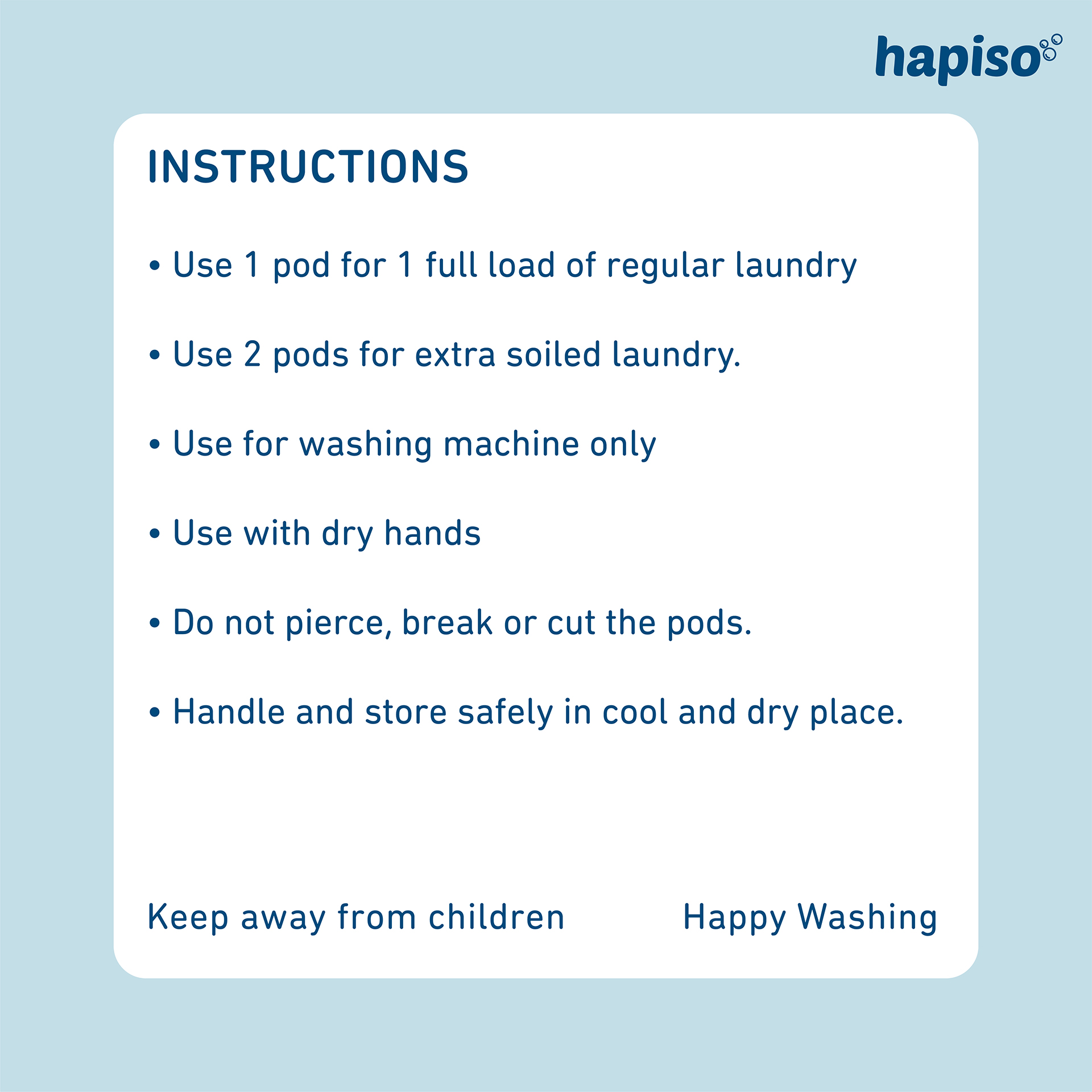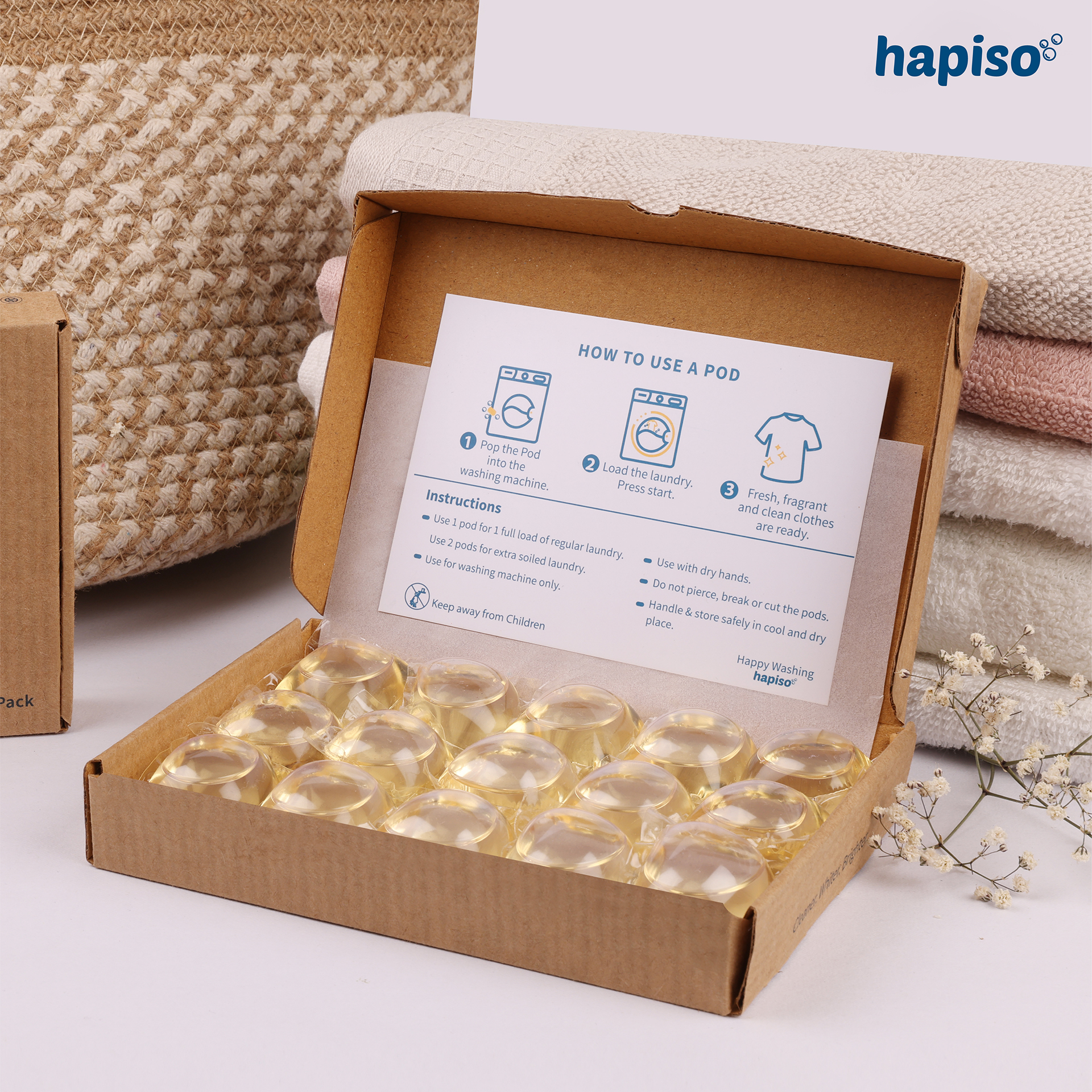 If you prefer your clothes to be without fragrance, then our fragrance-free pods are a perfect solution. Hapiso pods give your clothes a good clean without damaging the fabrics, removes stubborn stains, helps to keep your clothes looking brighter and newer for longer, the whites look whiter (and not white-ish)! Youll notice zero residue after washing the clothes and even in the machine.