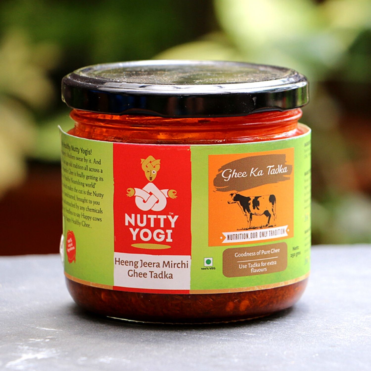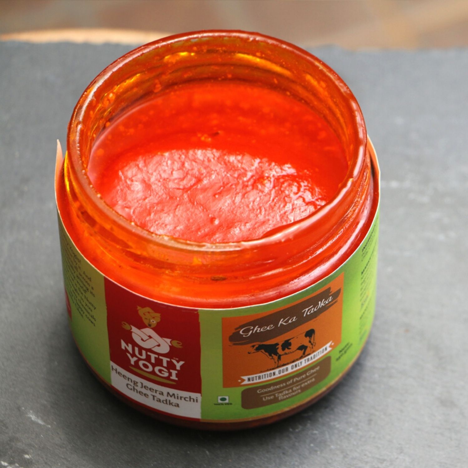 Nutty Yogi's heeng jeera ghee is a must have on the dining table. Drizzle a teaspoon on anything and its flavours and aroma will just accentuate the dish. Just like we Indians love our "tadka" we have invented the heeng jeera ghee for you. Made with pure cow ghee, it has spices like jeera, whole red chillies, heeng.