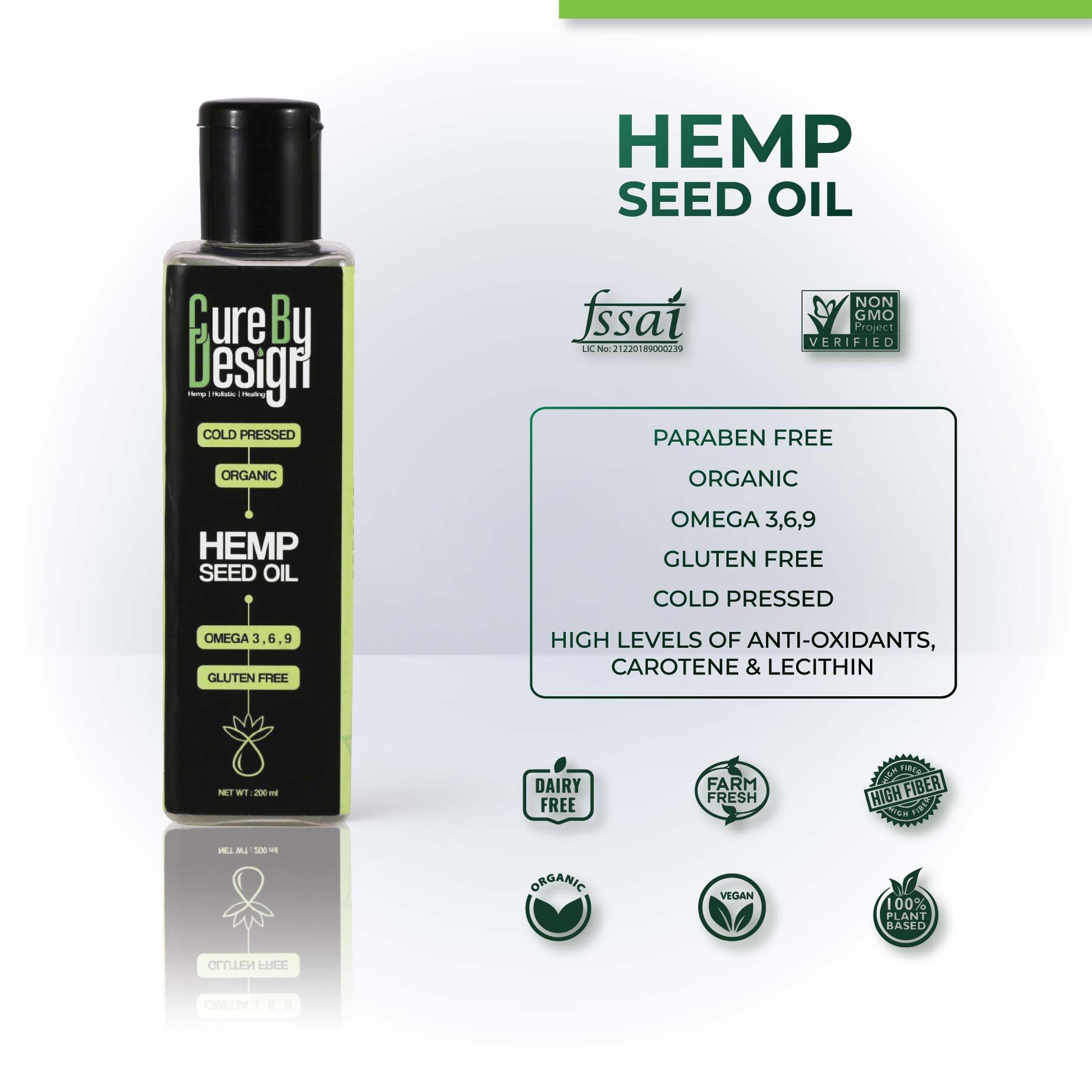 Cure by Design brings you raw, cold-pressed hemp seed oil. Made from Himalayan hemp seeds, this multi-purpose oil is all you need for nutritional and skin-care needs.
