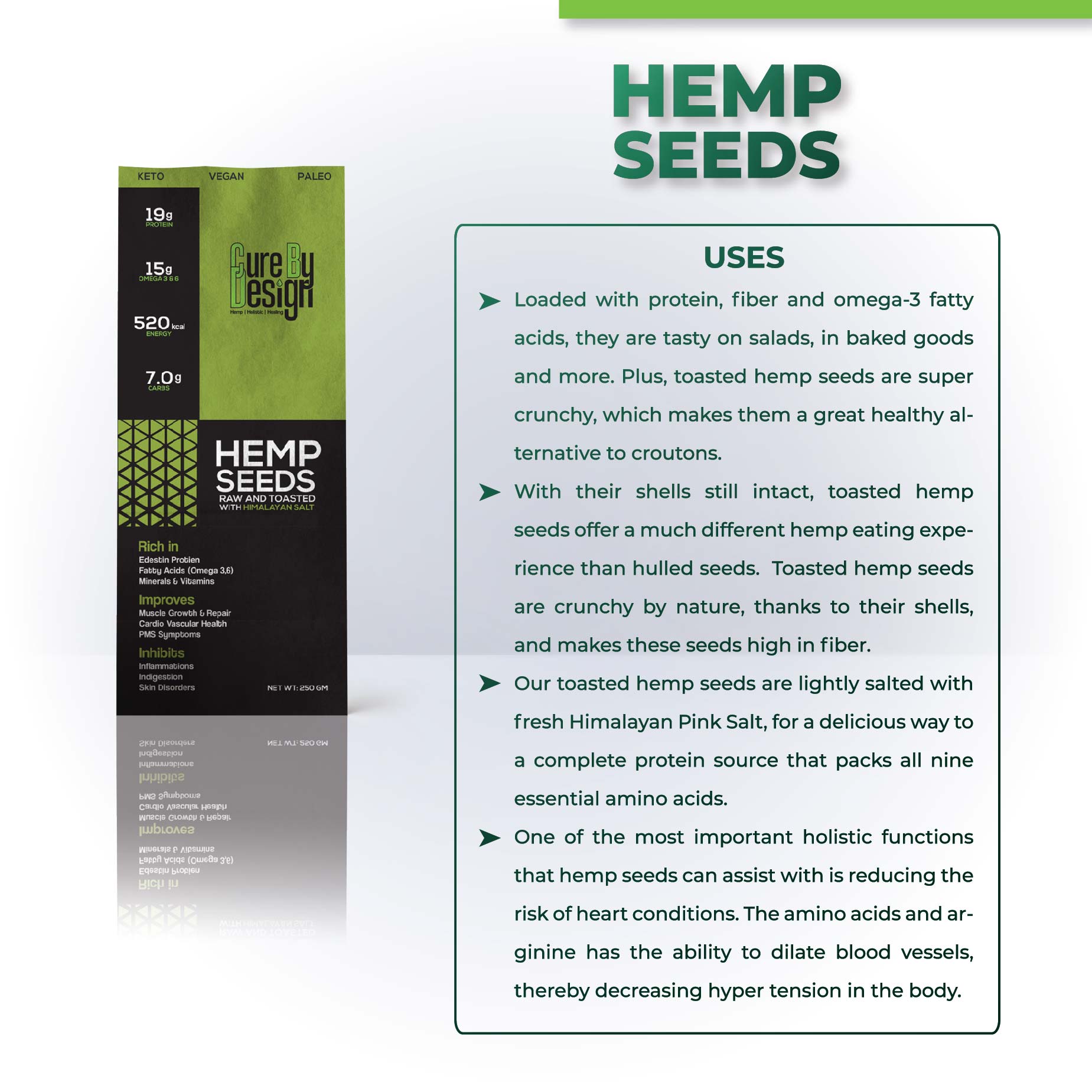 To grant you extra health, Cure By Design presents you with not only with just Hemp seeds But also toasted with the healthiest pink salt to grant you with the effortless solutions for the healthiest lifestyle.