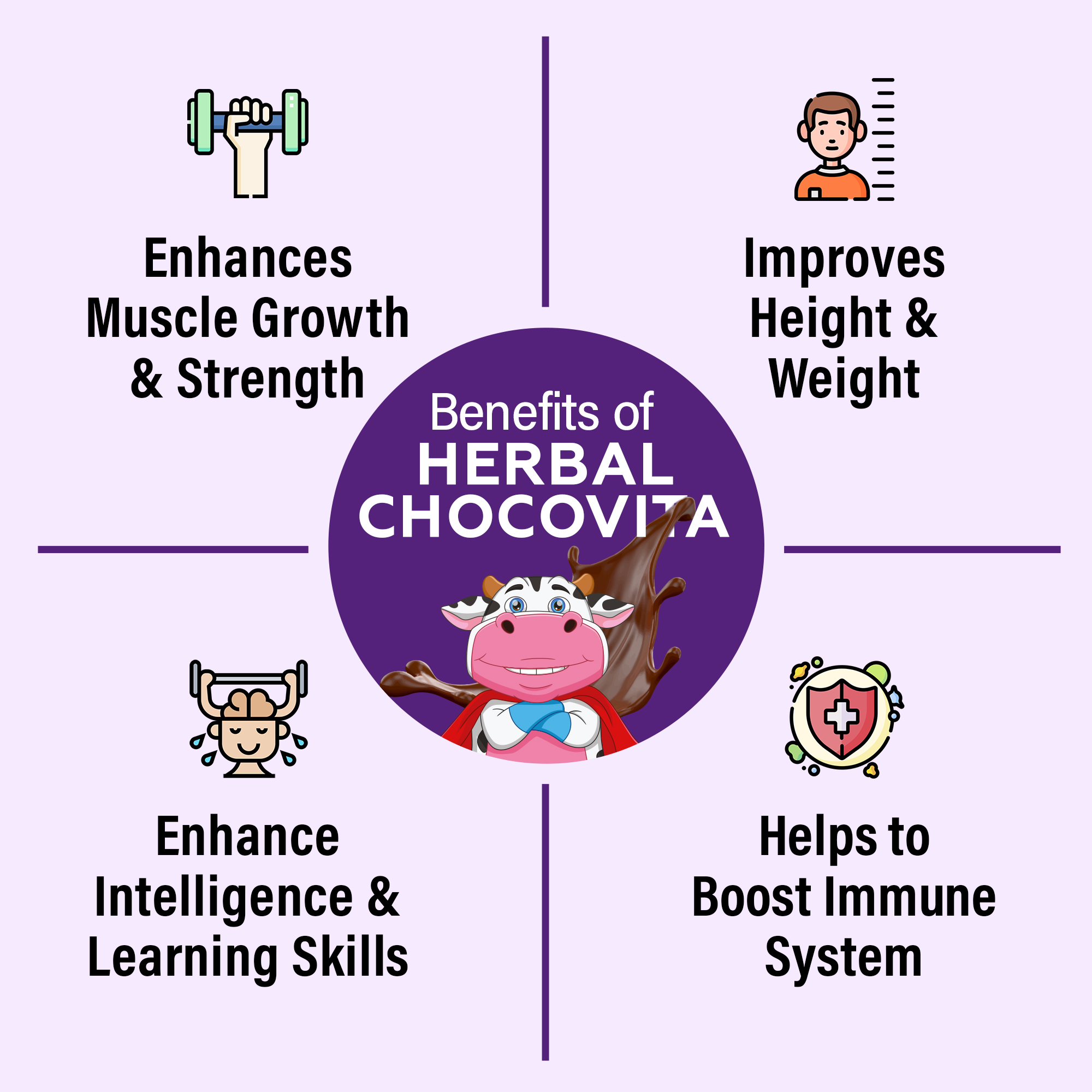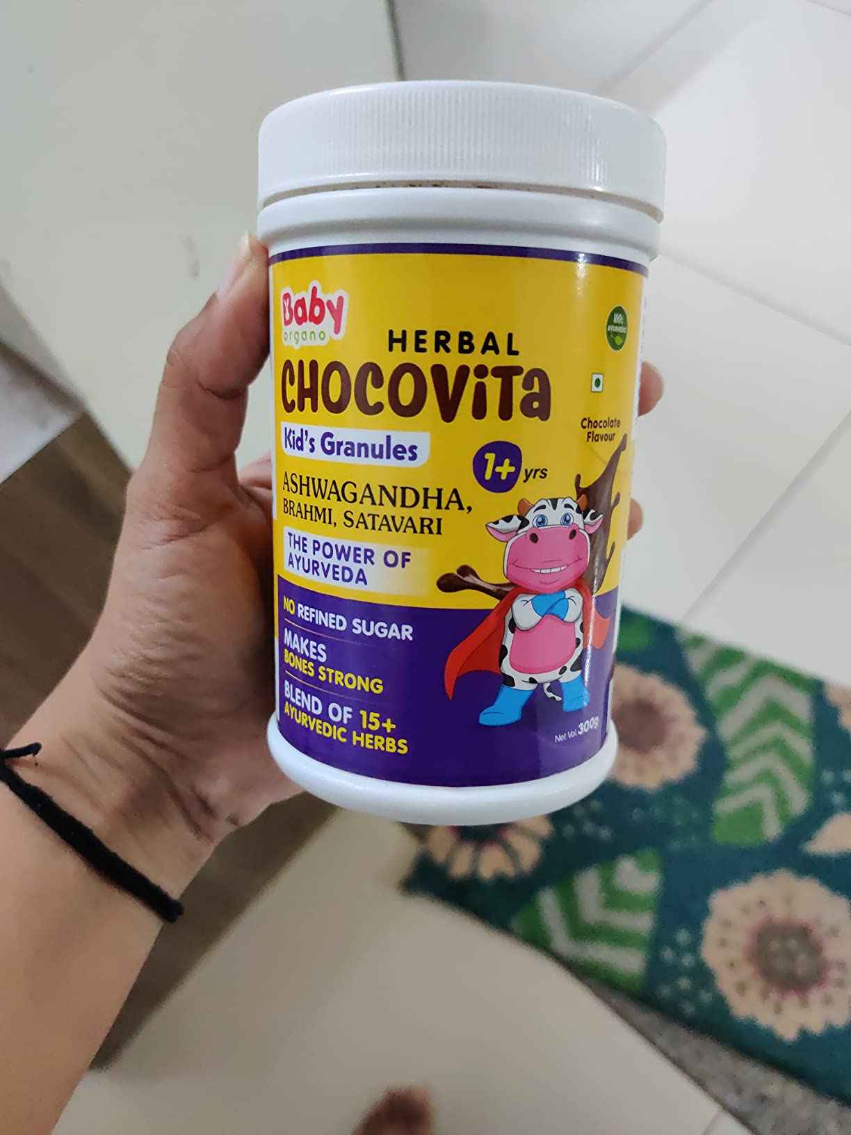 BabyOrgano Herbal ChocoVita is Made with the goodness of Ayurvedic herbs, that are loaded with helpful nutrition and yummy taste in every serving! Enriched with 15+ powerful Ayurvedic herbs that fulfill the daily nutrition needs of growing kids. It is free from harmful preservatives & refined sugar. Every kid is bound to fall in love with the rich chocolate flavor of Herbal ChocoVita. It can be consumed directly or can be mixed with milk. Its available in 300 gms jar packaging.