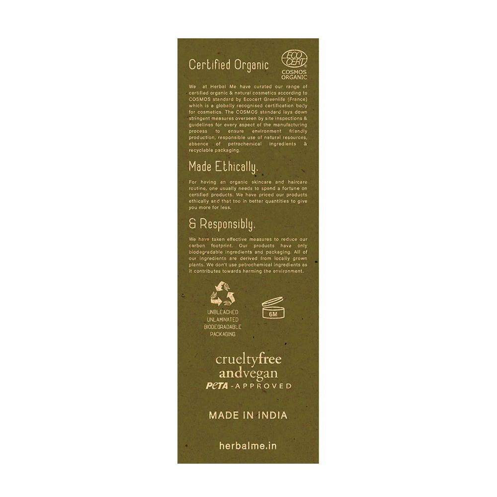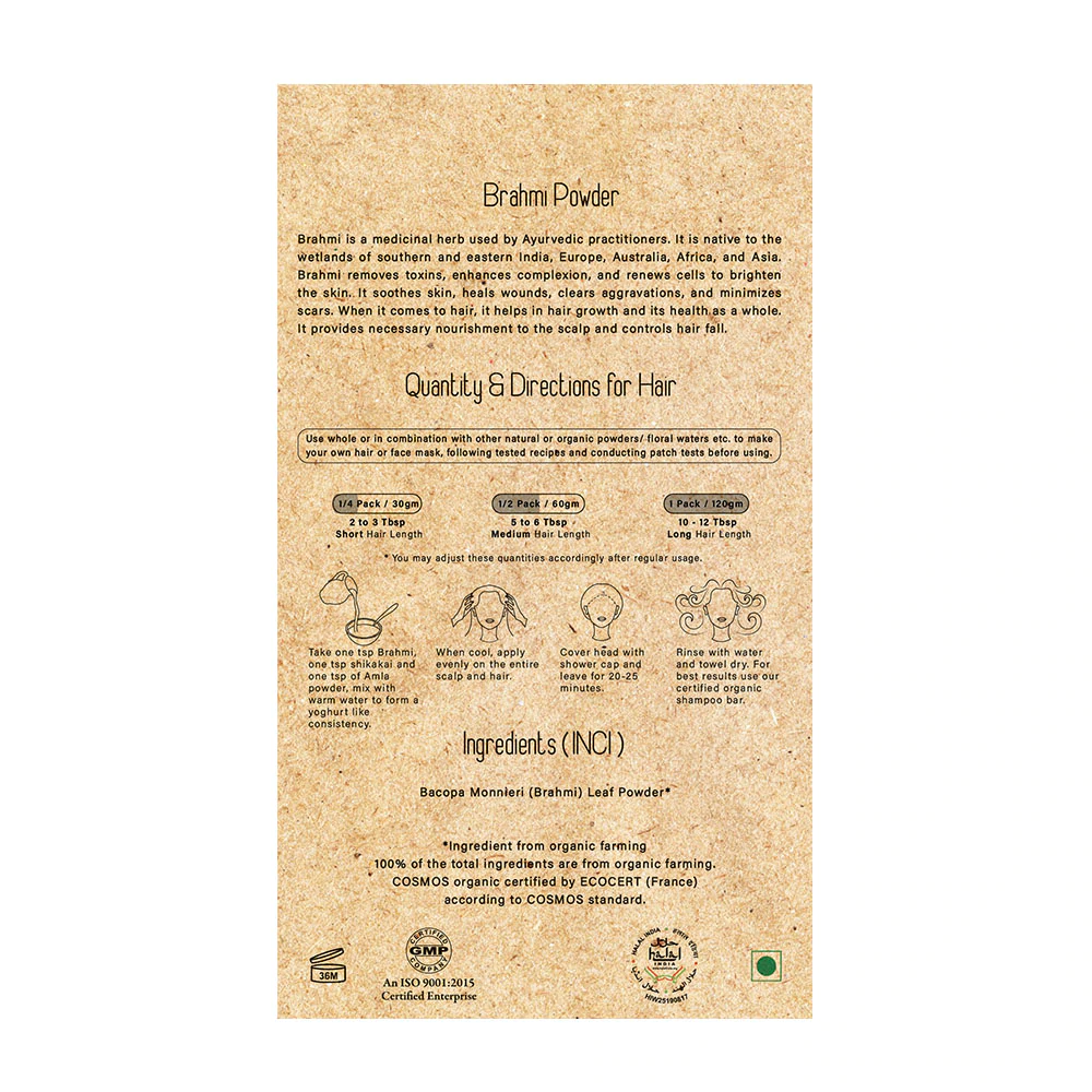 Herbal Me Brahmi Powder removes toxins, enhances complexion and renews cells to brighten the skin. It soothes skin, heals wounds, clears aggravations and minimizes scars. When it comes to hair, it helps in hair growth and its health as a whole. It provides necessary nourishment to the scalp and can also treat temporary baldness with its biochemical compounds.
