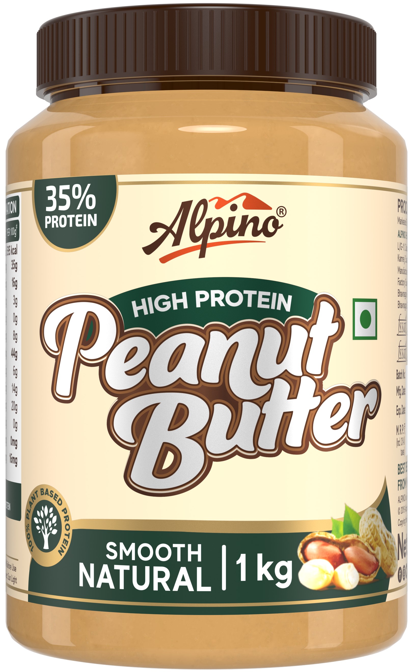 Alpino High Protein Natural Peanut Butter Smooth - Unsweetened - 1 kg