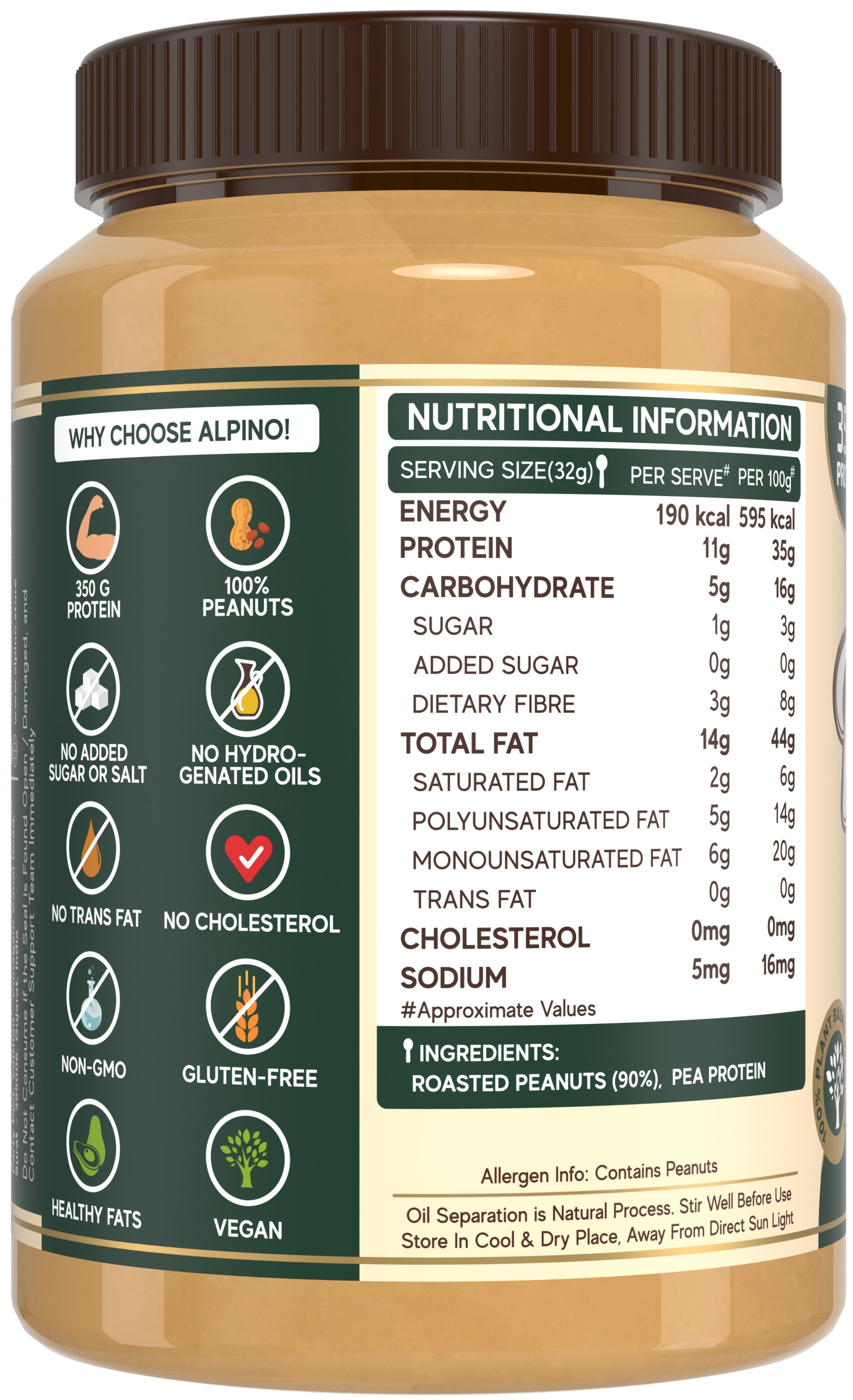 - Natural, Unsweetened - High Protein Peanut Butter - 35 G Vegan Protein | 100% Plant-Based | No Added Whey Protein | No Added Soya