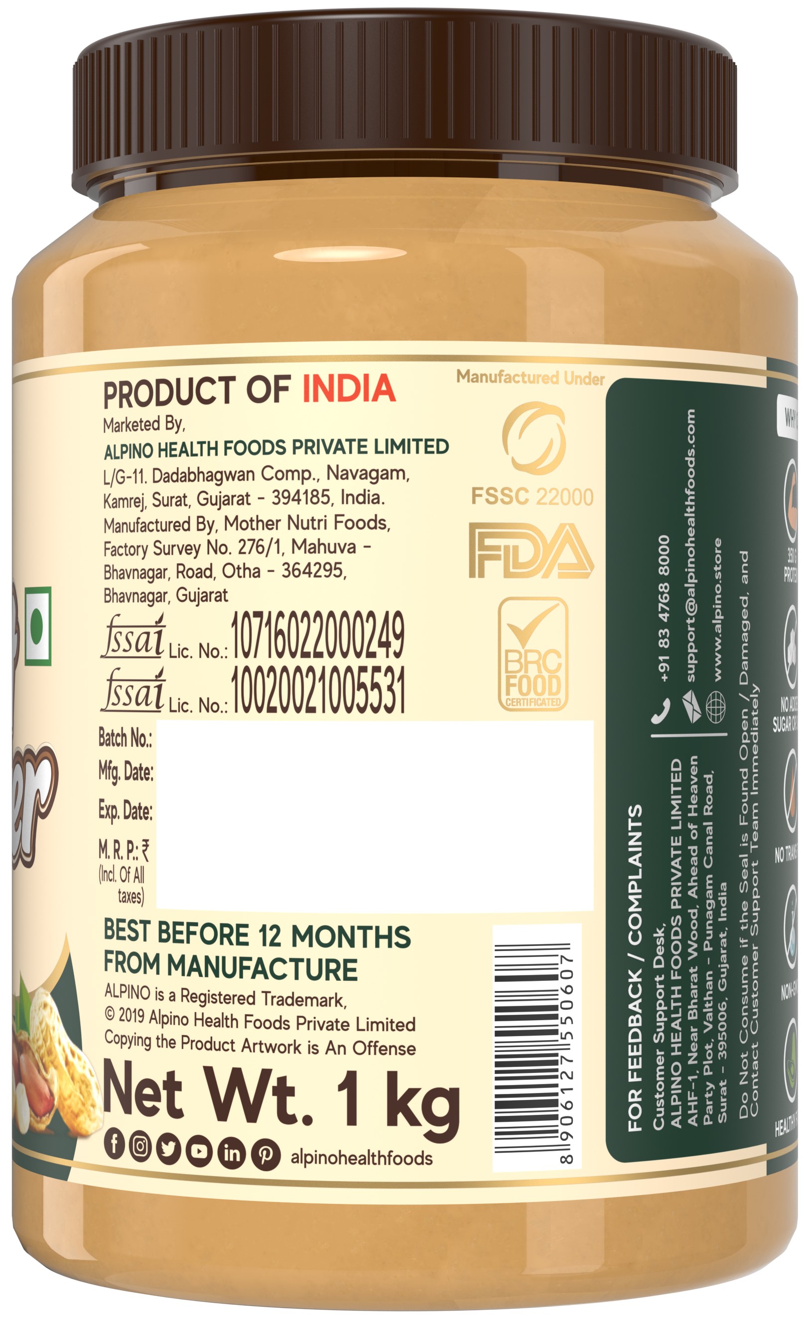 - Manufactured Under US FDA, APEDA, BRC, FSSC, HALAL, KOSHER, FSSAI, GMP, ISO 22000 Certified Facility, Under Strict Quality Control