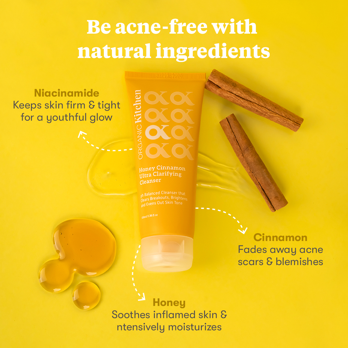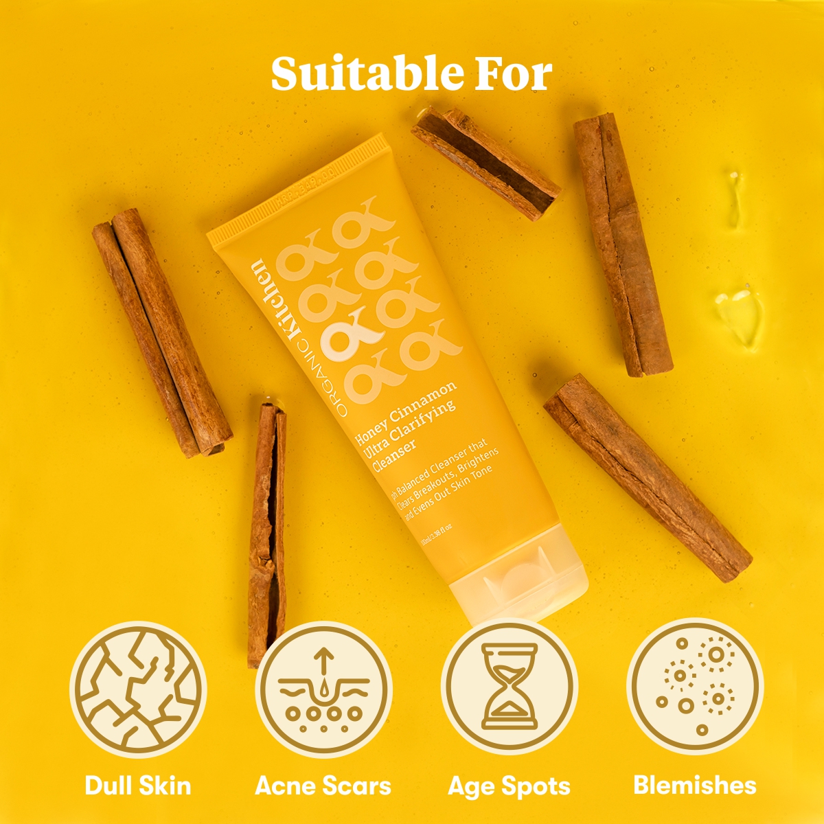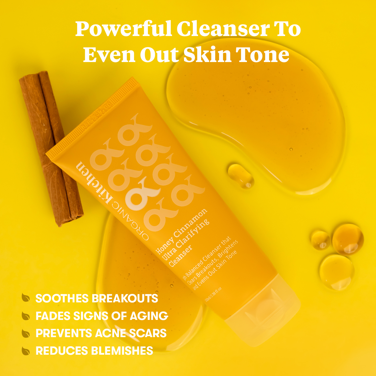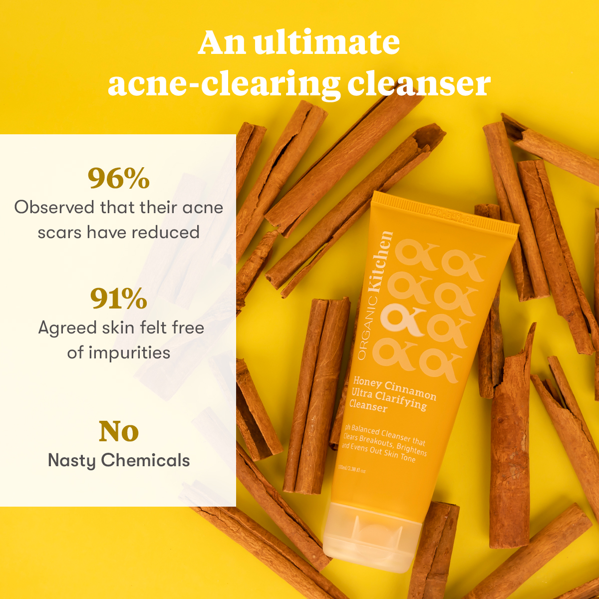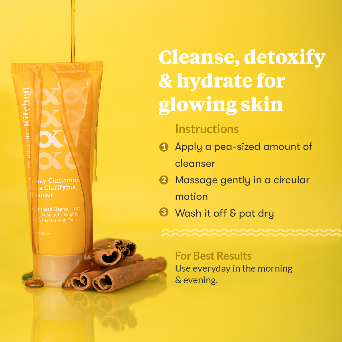 This is a unique formulation for acne-prone skin with skin moisture balance. This Honey Cinnamon Ultra-Clarifying Cleanser is a deep hydrating formula that is crafted to remove dirt and impurities from the skin. This lightweight and gel-like cleanser is a blend of pure organic extracts of honey, cinnamon, and niacinamide. It improves the look of fine lines and wrinkle while retaining the natural moisture of skin.
