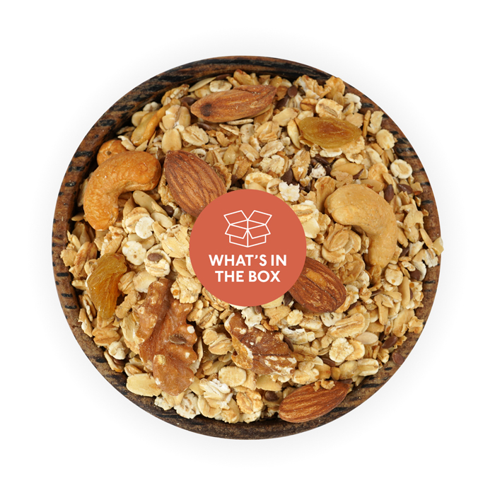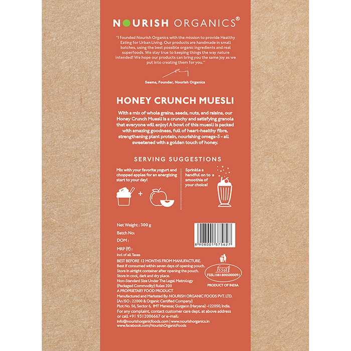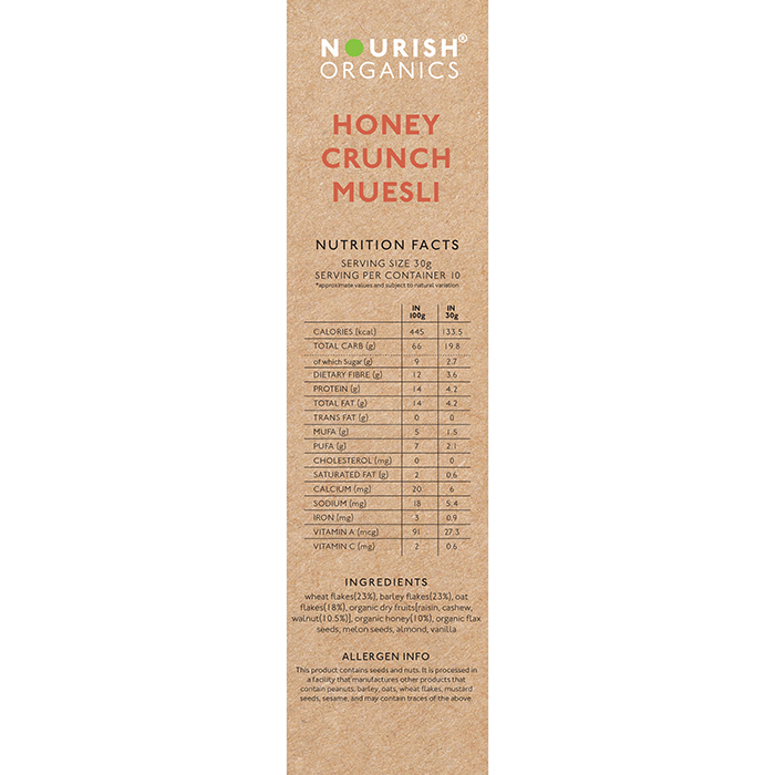 This product is a crunchy and satisfying granola that is packed with full of heart-healthy fiber, strengthening plant protein, nourishing omega-3s, all sweetened with a golden touch of honey.