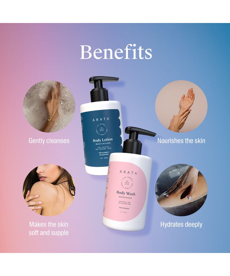Our Hydrating Bath & Body Combo consists of Nourishing Body Wash and moisturising Body Lotion that provides your skin with the ultimate nourishment, tackles dry spots and improves the skin barrier with every use.