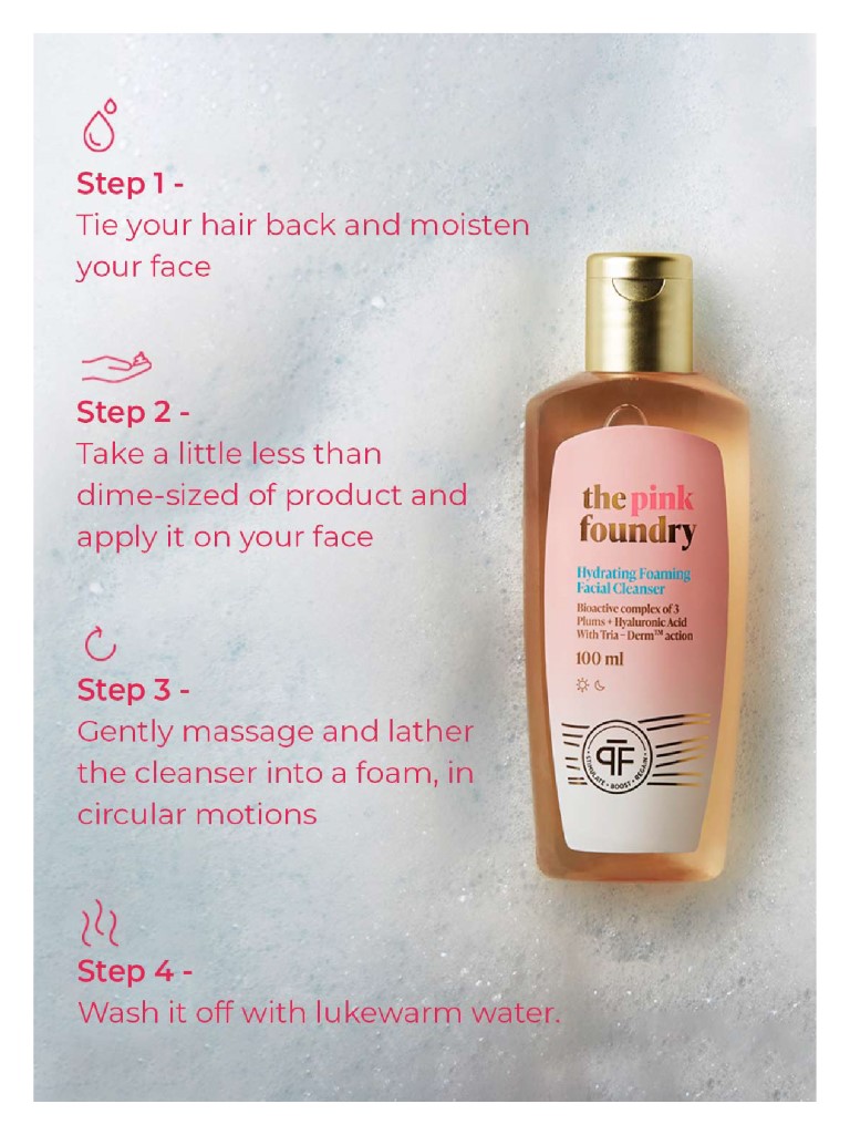 Hydrating Foaming Facial Cleanser is formulated and designed to boost hydration through superfruit ingredients resulting in smooth, supple and hydrated skin over a long period of time. This foaming (yet sulphate-free!) gentle cleanser removes impurities from the skin without losing its natural hydrating oils. Tria-DermTM action works with the most carefully chosen ingredients to activate the innate power of your skin. This moisture locking ingredient attracts and binds the natural water in the skin cells to hydrate and moisturise every layer of skin making it look visibly plump and healthy. Hyaluronic Acid helps retain over 1000 times its weight in water within the skin cells, making it an excellent moisturiser.