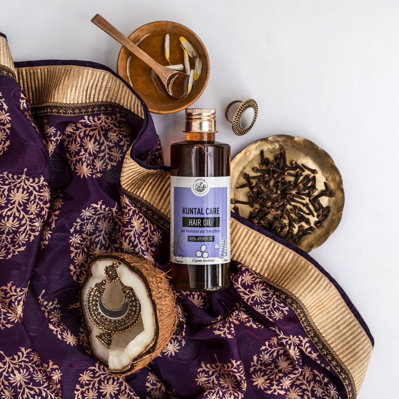 Amrutams Kuntal Care Hair Oil revitalizes the scalp and strengthens the roots. Made with ingredients like Neem, Kapoor Kachri, Gudhal and Balchhad, the Kuntal Care Hair Oil restores, repairs and promotes the growth of thick, lustrous hair and ensures a healthy scalp.