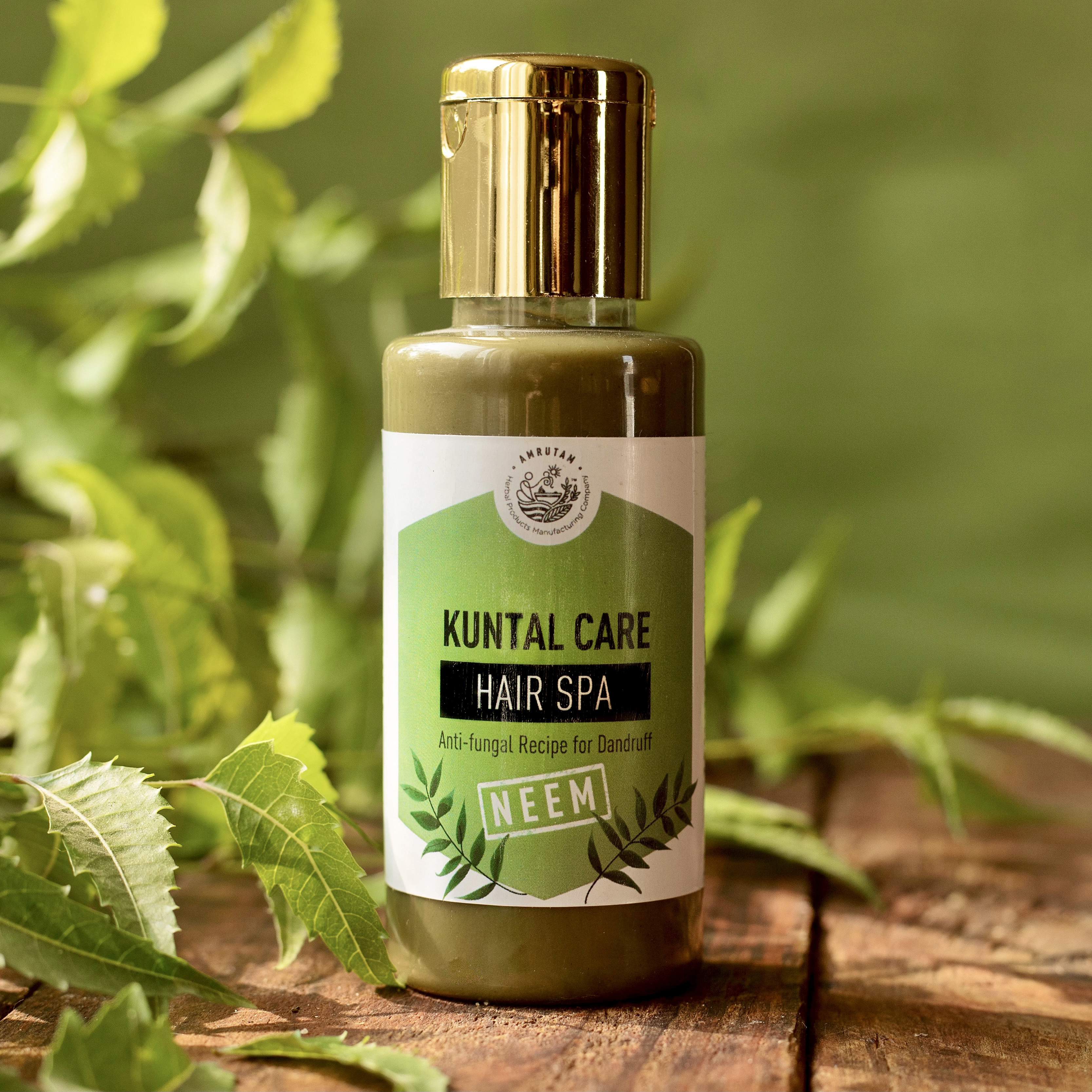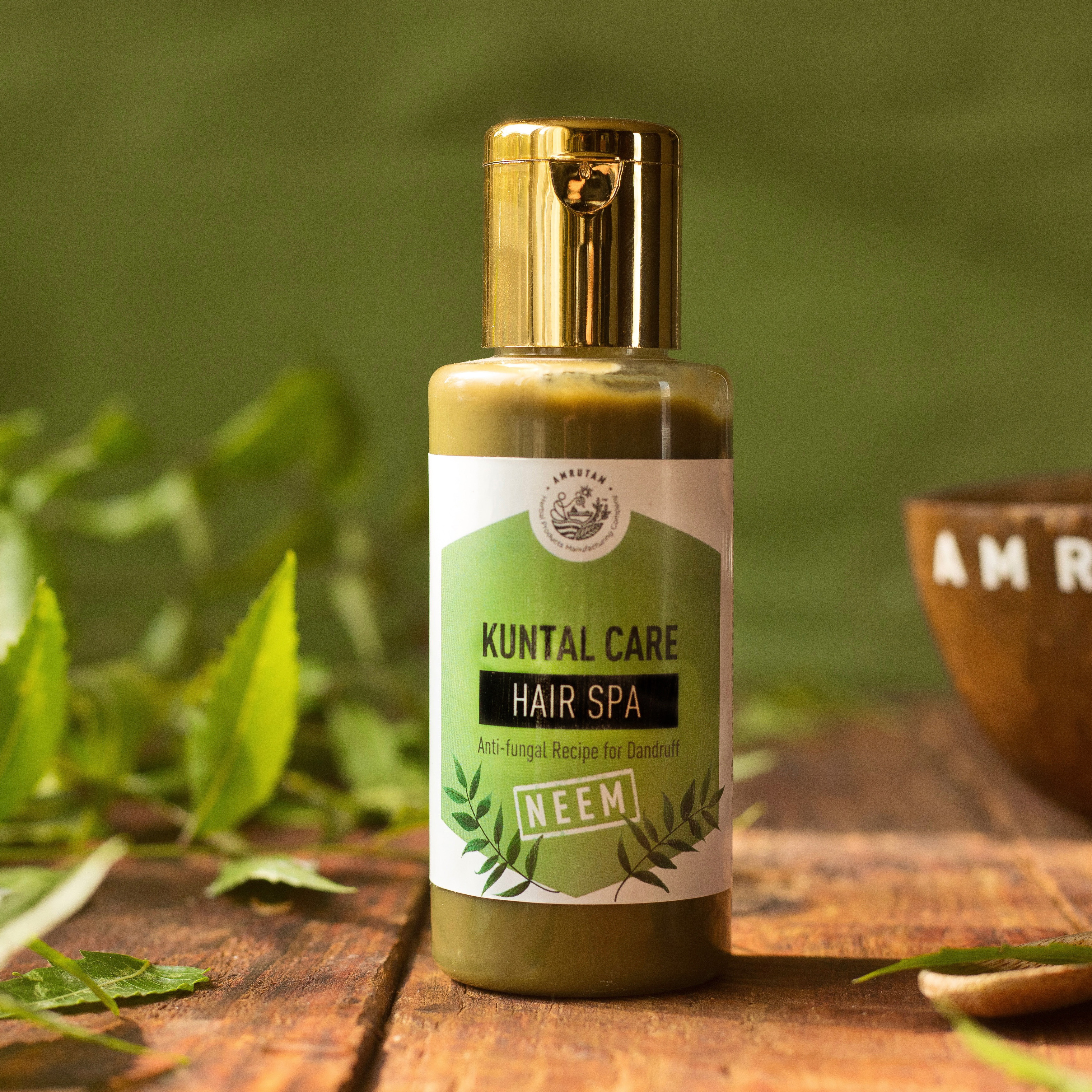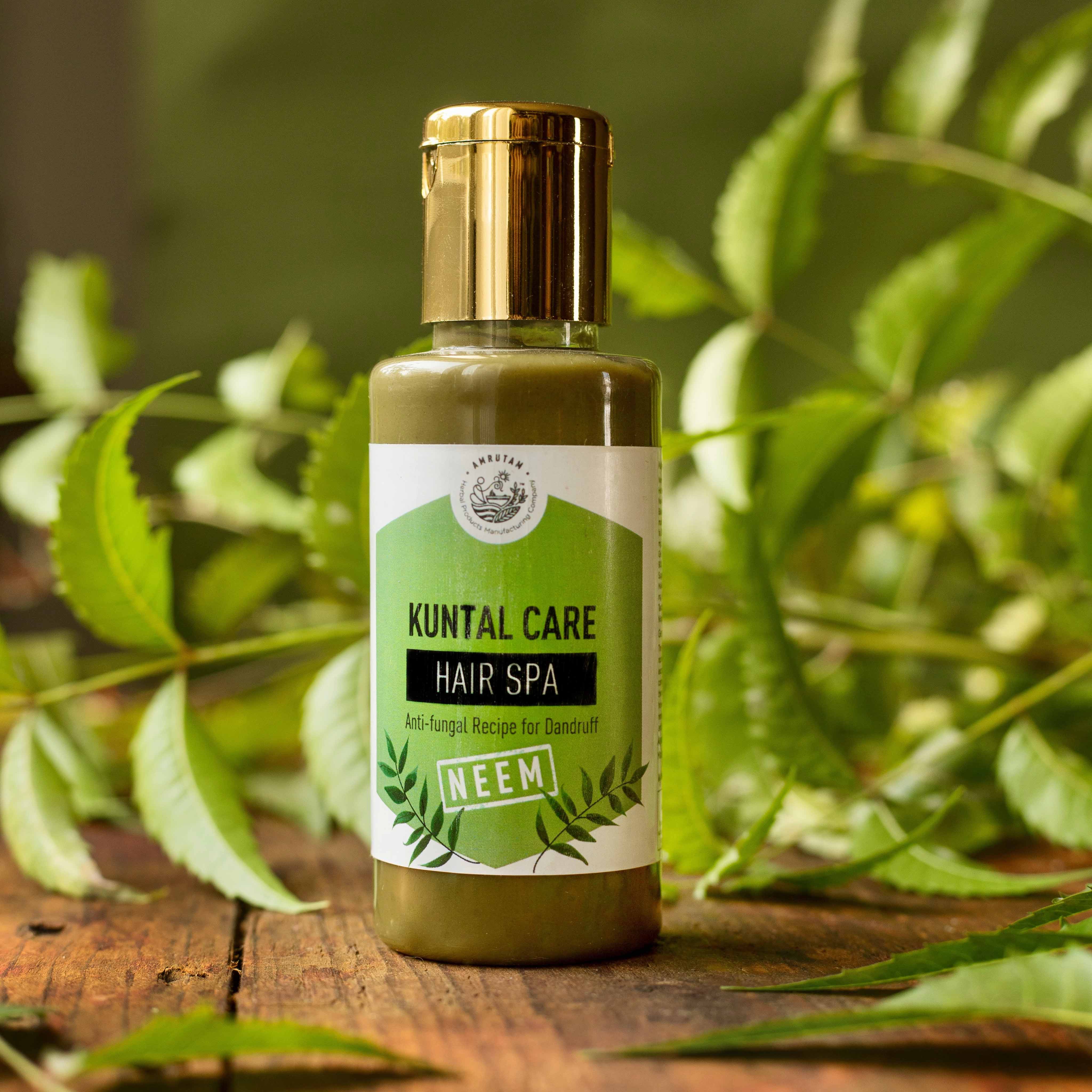 The neem in Amrutams Kuntal Care Hair Spa with Neem deep cleanses and revitalizes hair from the roots to the tips. It is a natural healing agent with anti-bacterial, anti-fungal and anti-inflammatory properties that treat and reverse dandruff, itchy scalp and lice.
