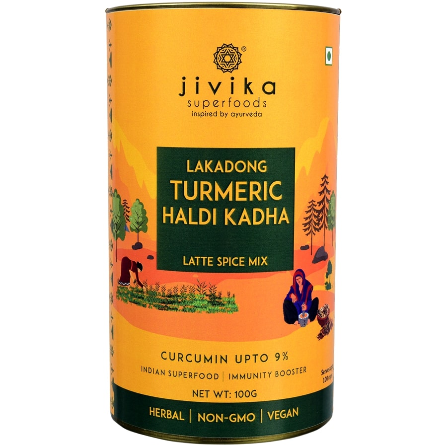 Lakadong Turmeric is sourced from nutrient-rich soils of Jaintia Hills, Meghalaya. The hills are blessed with heavy rainfalls, making their soil fertile. Producing 9% curcumin, Lakadong turmeric is the worlds finest and exotic turmeric. Filled with ingredients like Black pepper, Cinnamon, Cloves, Cardamon, Ginger; which are naturally grown and sourced directly from farmers across India. This blend adds a little zing to your daily conventional latte.