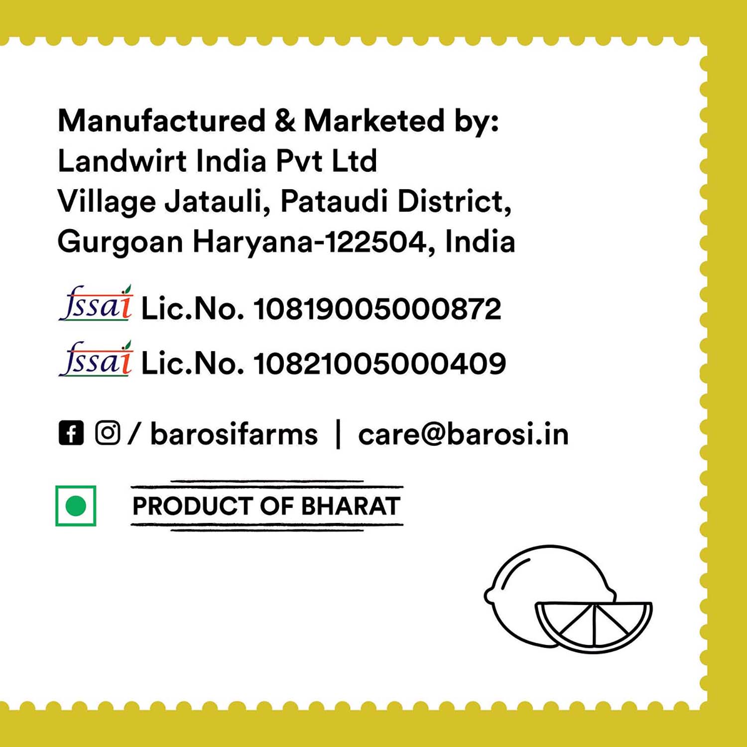 Traditionally Handmade: Barosi Lemon Pickle is hand made using traditional age-old methods with Indian spices and fresh Lemon slices.Oil & Preservative Free: Barosi Lemon Pickle is made without using any Oils or Preservatives, using authentic ingredients of Kaagzi Lemons, Cinnamon & Cumin Seeds.