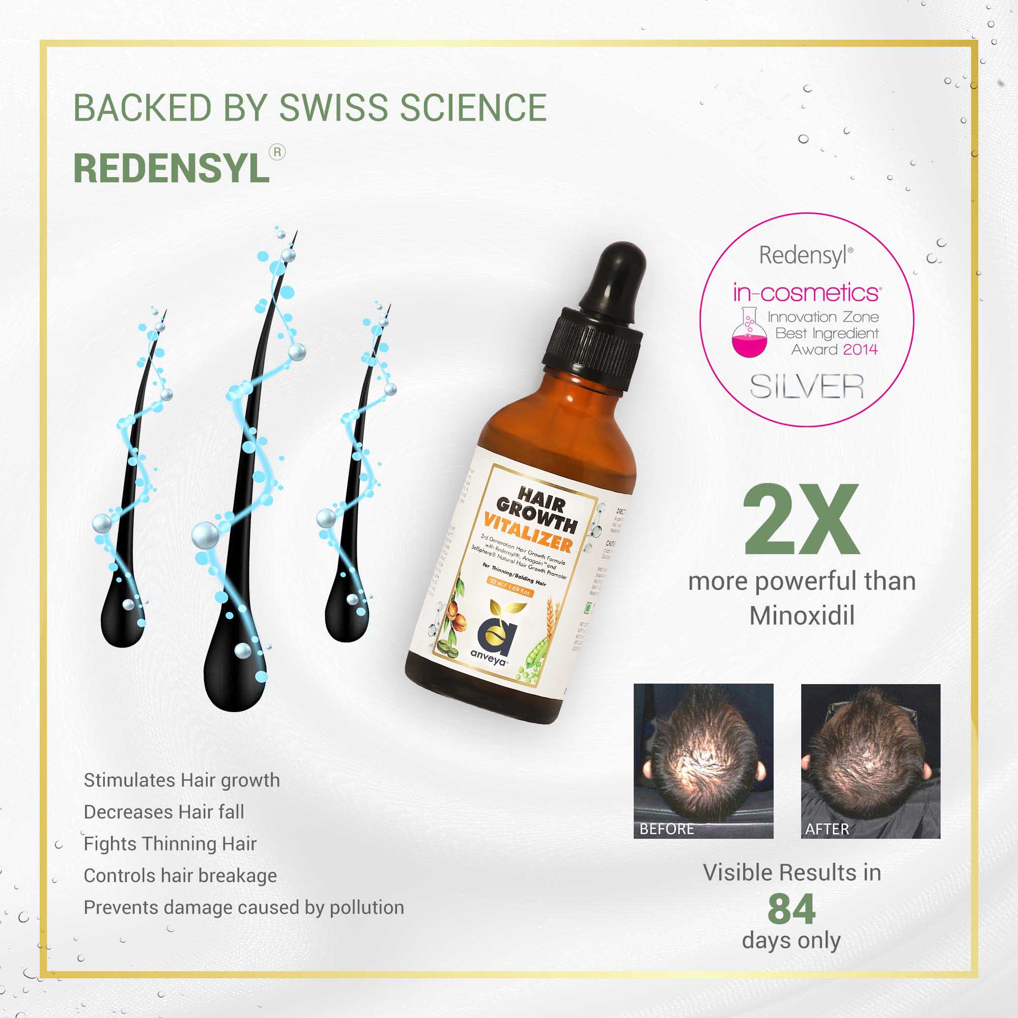 2. Hair growth vitalizer serum, 50ml: Activates the hair stem cells for a new growth phase, nourishes the hair and reduces hair fall.
