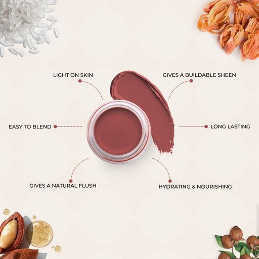 All your makeup needs are covered with this little pot of glam! A 3 in 1 multipurpose tint for lips, cheeks & eyes for you to step out with the perfect no-makeup-makeup look. No more hassle to carry a bunch of makeup products! Get on-the-go glamorous looks with this travel-friendly, all-in-one lip and cheek tint for women. Just Herbs Herb Enriched Lip and Cheek Tint is a lightweight wholesome natural makeup product that adds a natural tint to your lips, can be used as a cream blush for cheeks and as an eyeshadow on your eyelids. It is easy-to-blend & imparts a dewy-healthy looking sheen. Enriched with wholesome ingredients like Jojoba Oil, Javitri & Rice Starch that keep the skin moisturised and hydrated. This vegan product is free from chemical additives such as petrochemicals, parabens, SLS/SLES, silicones & beeswax. Available in seven buildable shades that suit most Indian skin tones.