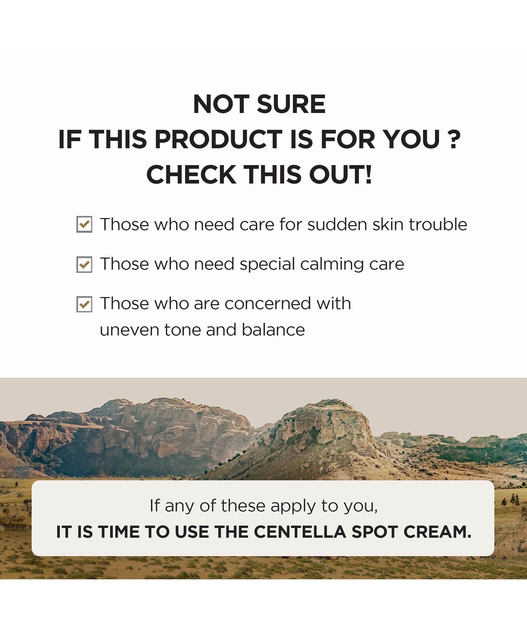 Experience the ultimate solution for skin imperfections with the Madagascar Centella Spot Cream. Crafted to perfection, this intensive dark spot corrector boasts a potent blend of 50% highly purified Centella asiatica extract from Madagascar and TECA, working harmoniously to soothe even the most irritated skin. Unlock a revitalized complexion as it promotes the skin's natural regeneration cycle, delicately eliminating dead cells while infusing moisture. Infused with niacinamide, it diligently illuminates and combats discoloration, unveiling a luminous skin tone. Its lightweight, breathable texture leaves a refreshing finish, a testament to meticulous skincare.