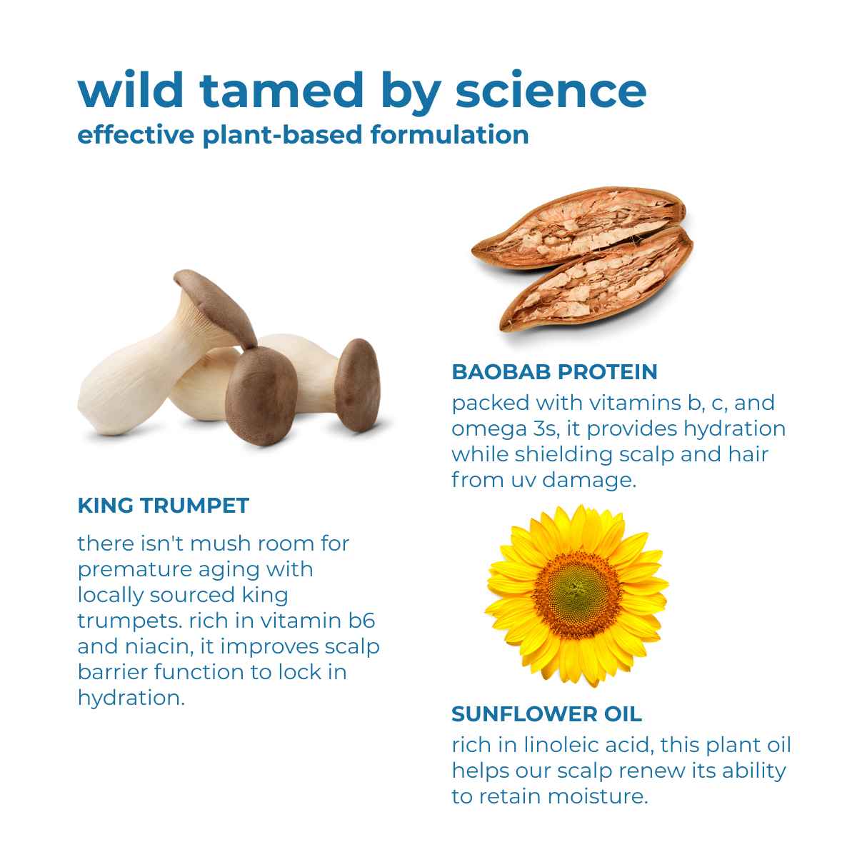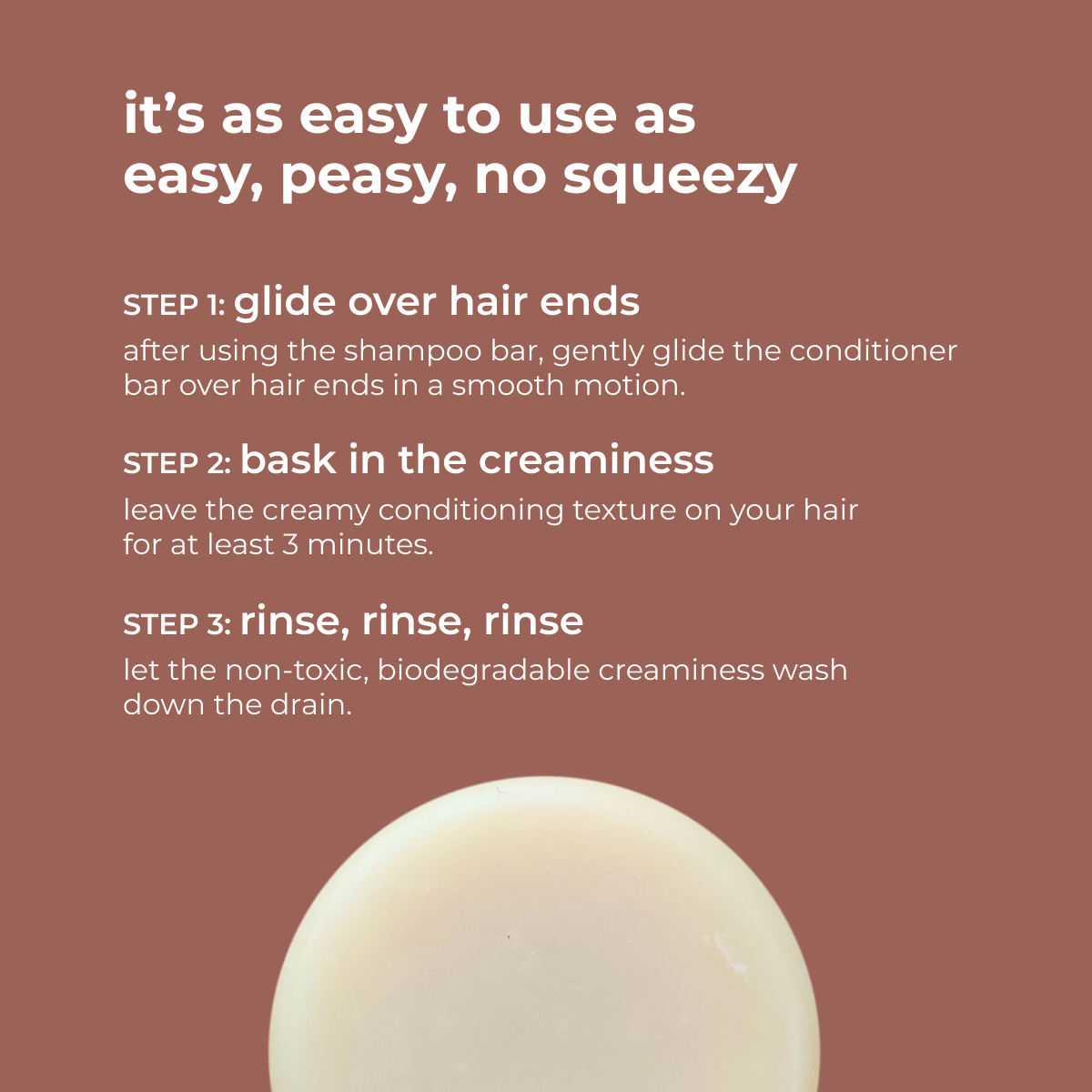 1. Remoisturises hair : When exposed to environmental stressors, a weak barrier lets moisture escape. Mushrooms and baobab in this rehydrating conditioner bar strengthen the scalp barrier to lock in moisture.