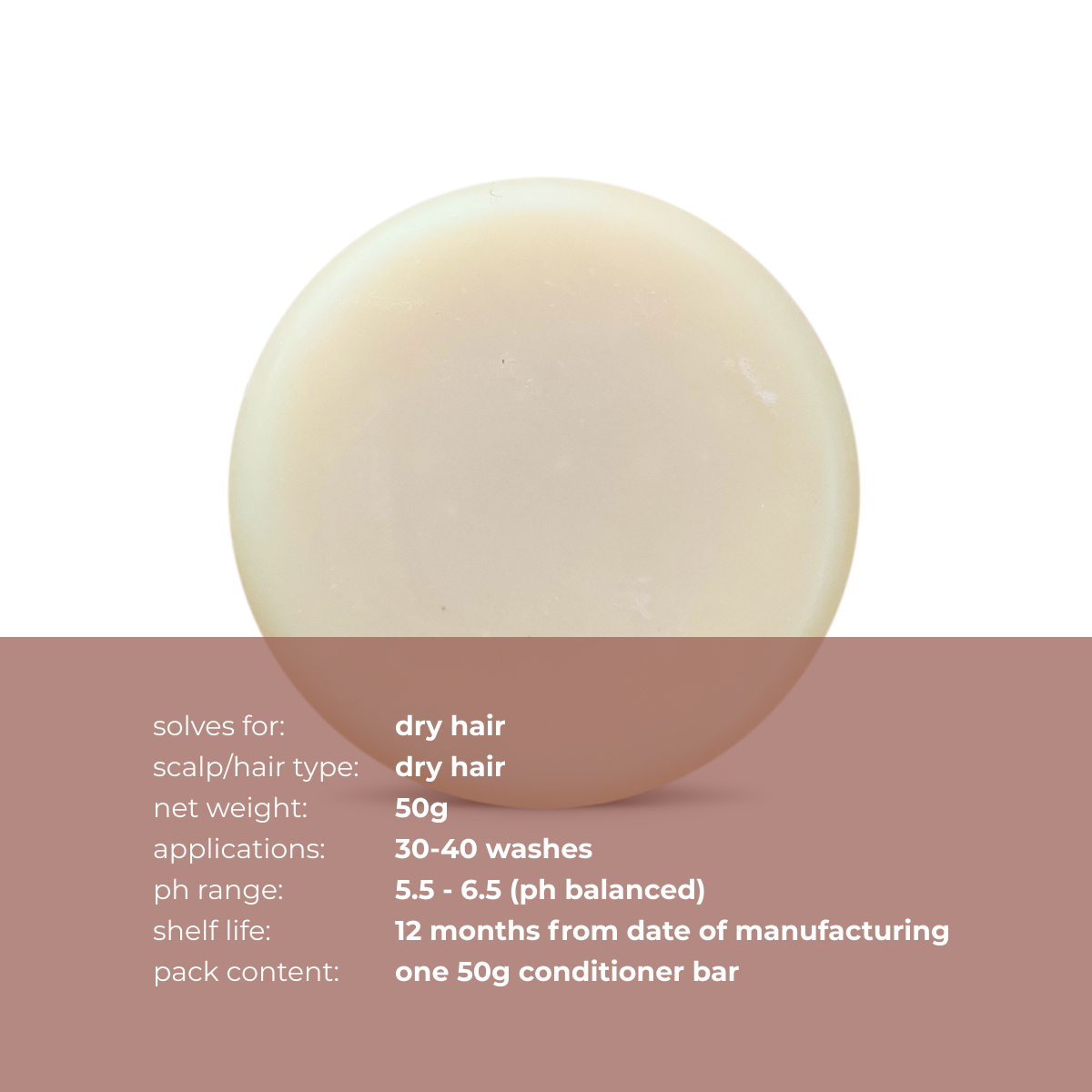 Rehydrating Conditioner Bar for Dry Hair : Like our scalp, our hair too loses moisture due to heat, cold and pollutants. Replenish with vitamin-packed mushrooms and baobab protein in this rehydrating conditioner bar. A fix so simple, we call it magic.