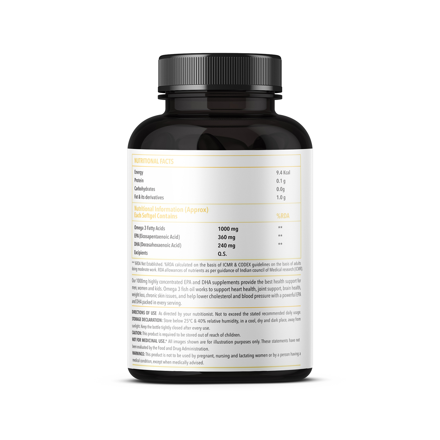 Omega 3 To Keep You Worry-Free: You Work So Hard For Everything To Be Perfect, But Sometimes Your Food Habits Fall Short Of Perfect. WeVe Got Something For You To Bridge This Gap. Say Hello To Our Ultra Pure Omega 3 Fish Oil Supplement. The Ideal Combination Of 1000Mg Omega 3, 360 Mg Epa And 240 Mg Dha To Help Support The Brain, The Heart And The Eyes.