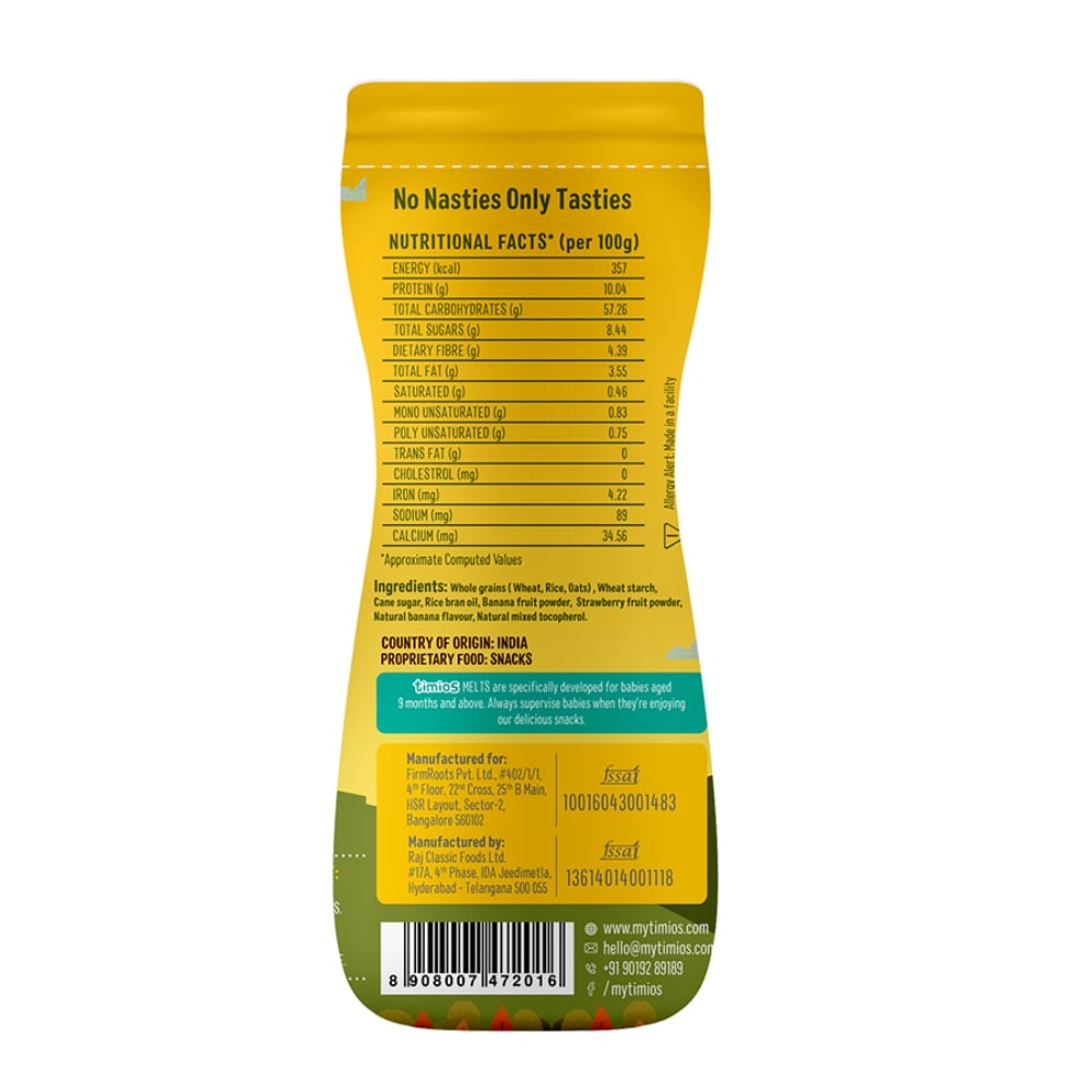 MELTS for 9+ months, this is a 100% natural and healthy non fried whole grain snacks.