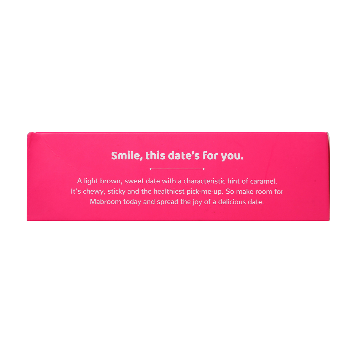 Covered by a light-bronze and fairly hard skin, Mabroom dates are delightfully sweet and sticky on the inside. Mabroom has a characteristic taste and chewy flesh. When dried, it has a unique texture that is both soft and firm, with a fibrous taste.