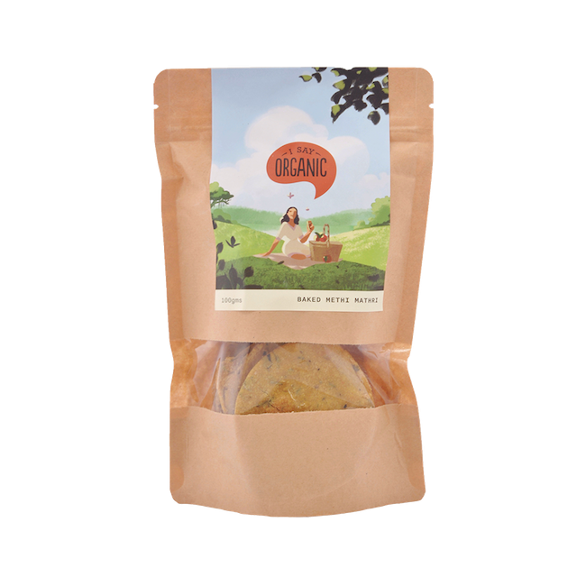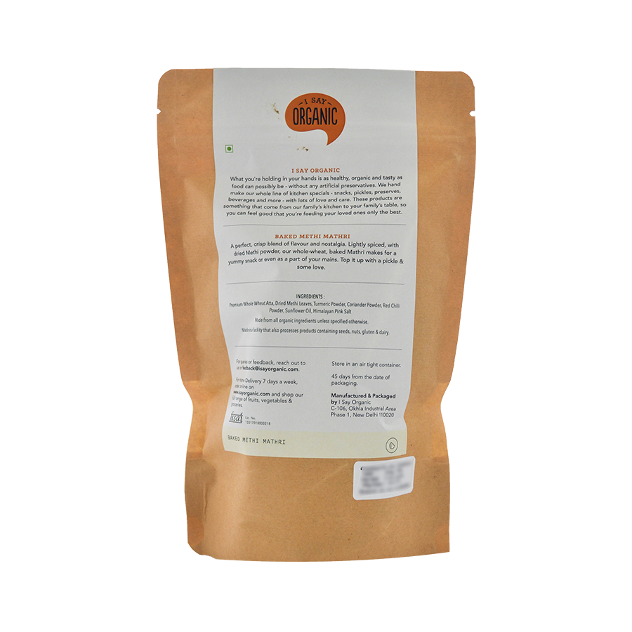 A perfect, crisp blend of flavour and nostalgia. Lightly spiced, with dried Methi powder, our whole-wheat, baked Mathri makes for a yummy snack or even as a part of your mains. Top it up with a pickle & some love.