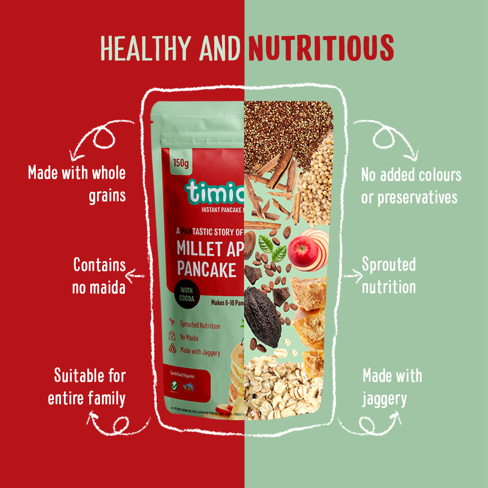 Made with natural whole grains, this is created for entire familys nutrition for breakfast, lunch, dinner or snack. It contains nutrition of multi millets - ragi, jowar and oats. Has no maida, artificial flavours, colours or preservatives. It is quick and easy to prepare by adding just butter and milk.