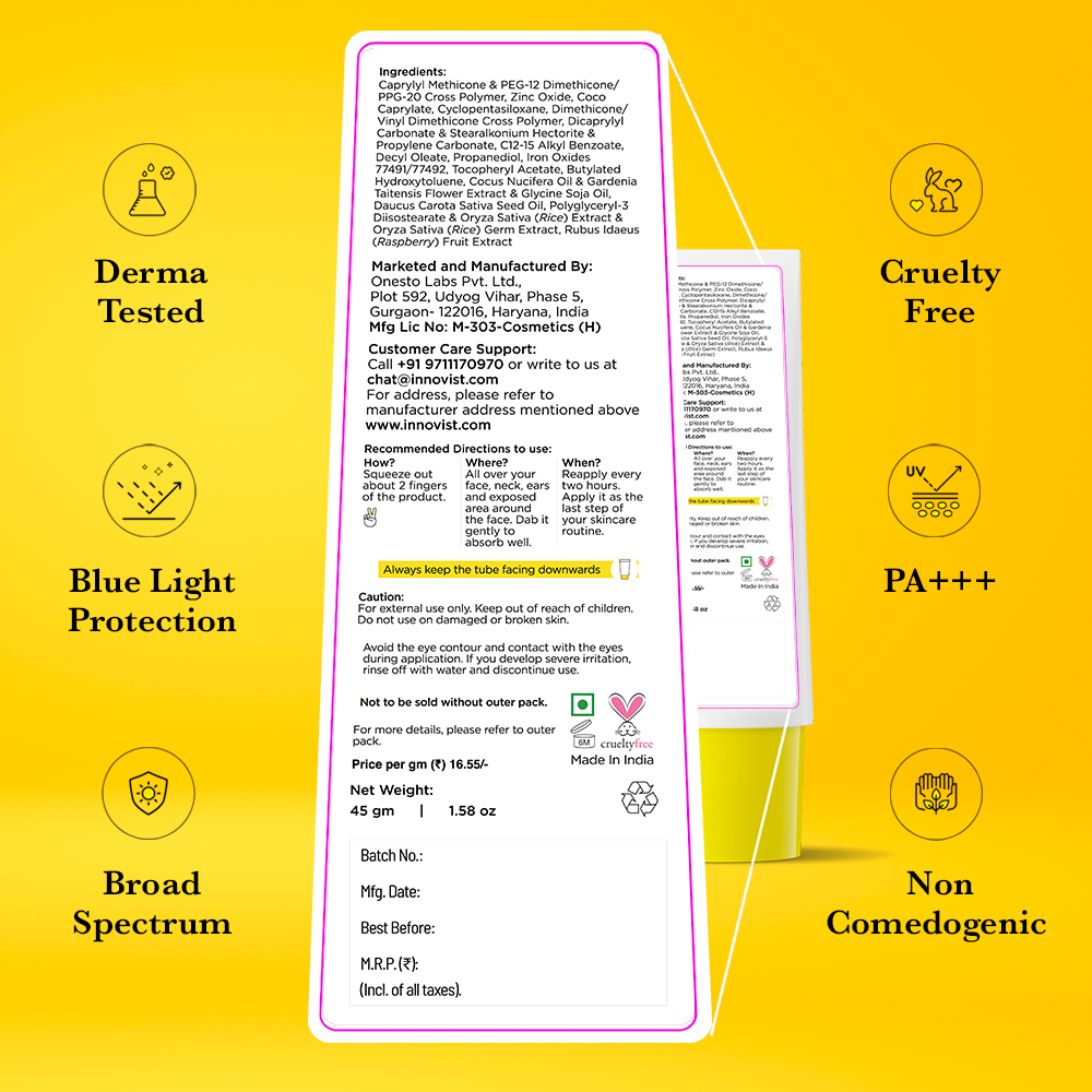 A must-have mineral sunscreen that likes to sit on the skinto physically protect it from the harmful UV rays! Basically, it acts as a gatekeeper for your skin and blocks & UV rays from entering the party aka your skins surface! Plus you wouldnt be able to resist its mousse-like texture! Enriched with Carrot Seed Oil, Raspberry Extract and Zemea for ultimate skin protection.