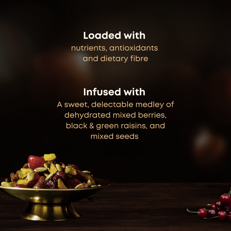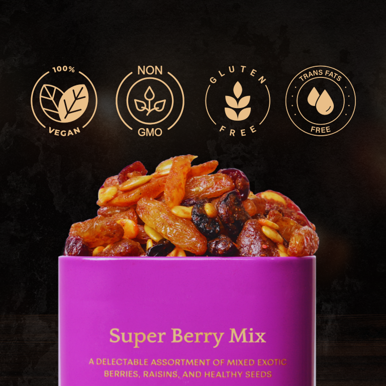Delectable Assortment Of Flavors: This super berry mix is a sweet, delectable medley of dehydrated mixed berries, black & green raisins, and mixed seeds that make for an unforgettable snacking experience.
