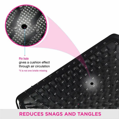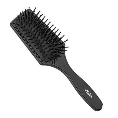 The VEGA Paddle Brush - 8586 M is a wide black paddle hair brush that smoothly glides into your hair and perfectly detangles and smoothens the tresses. Ideal for daily styling, straightening, smoothening, and adding shine, this paddle brush has ball-tipped nylon bristles that stimulate the scalp and also deliver a massaging effect while you brush your hair. This paddle brush for hair is beautifully designed to reduce snags and tangles and, also provide the greatest comfort to your hands during the hold. In case you have medium or long hair, this paddle brush would be your perfect choice to get the hair styling and brushing done rightly.