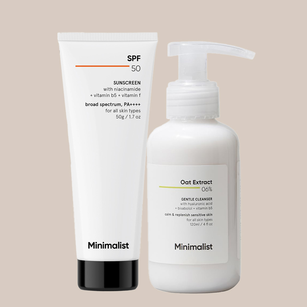 Soothe, Strengthen, And Shield Your Skin With The Minimalist Calm & Shield Duo, A Daily Skincare Essential Combo Designed For Gentle Cleansing And Broad-Spectrum Sun Protection. This Minimalist-Approved Routine Includes: