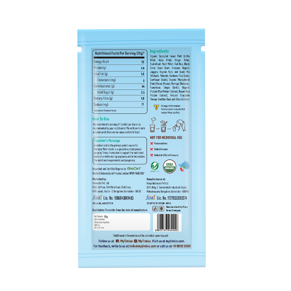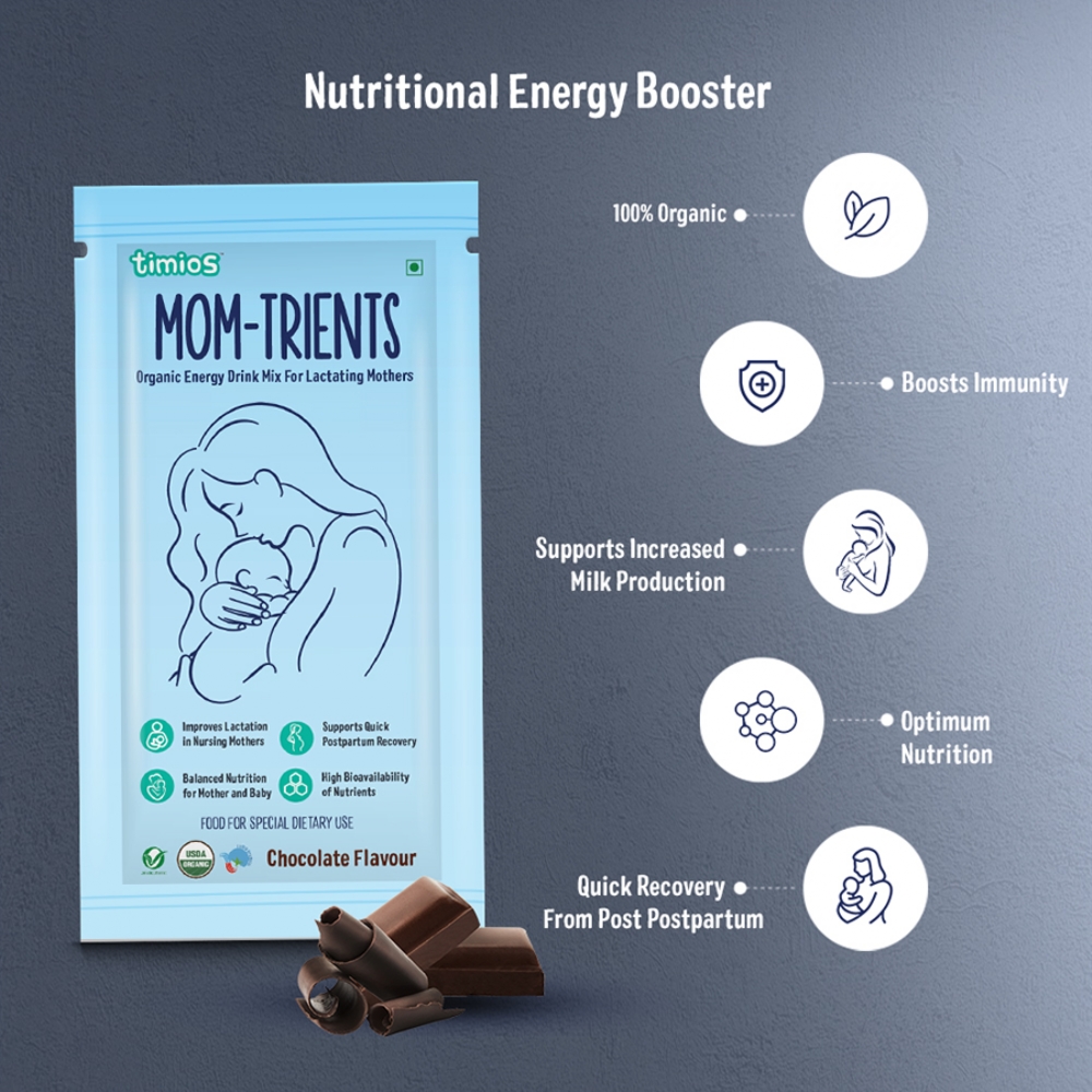 Mom-trients Energy Drink for Lactating Mothers is a premium nutrition product to help recover from childbirth and support breastfeeding. Made from diligently selected 100% certified organic ingredients that are rich in antioxidants and wellness properties. The energy drink for Lactating Mothers is an advanced phytonutrient formula to nourish both the mother and baby. Rich phytochemical content helps recover from postpartum(soreness, afterpains, incontinence, haemorrhoids, hormonal changes, weight gain, etc.). Highly bioavailable balanced nutrition helps promote increased lactation in mothers.