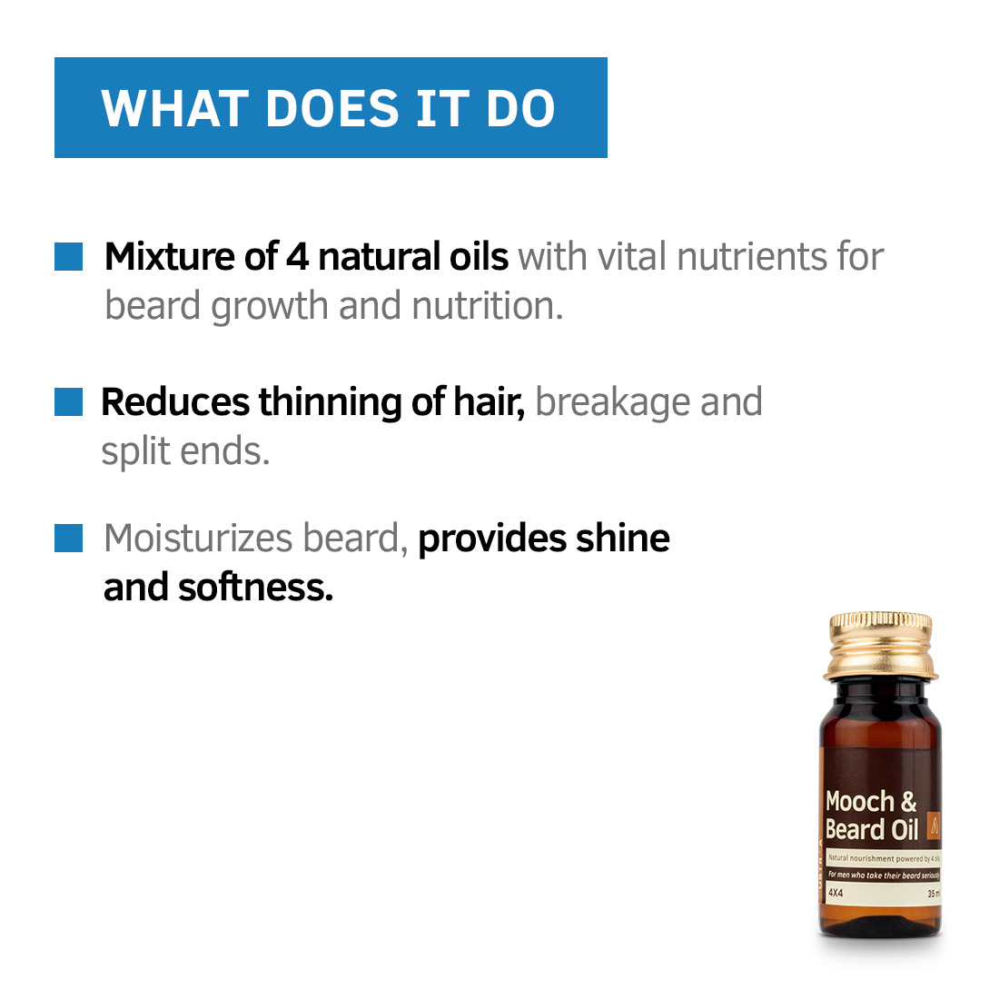 This product is a mixture of four completely natural oils including argan, sunflower, evening primrose, lemon (essential) and vitamin E. This signature combination provides Vitamins A, C, E, K and essential fatty acids for complete beard health, nourishment, and repair. It thickens beard hair, reduces itching, and maintains facial hair health. Also, it is completely silicon, paraben, mineral oil, petrolatum, and sulfate-free.