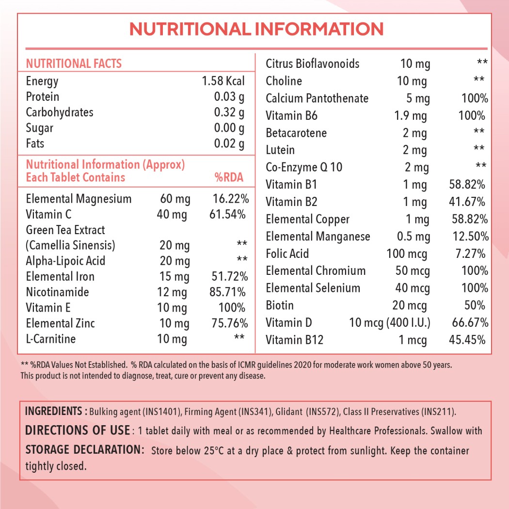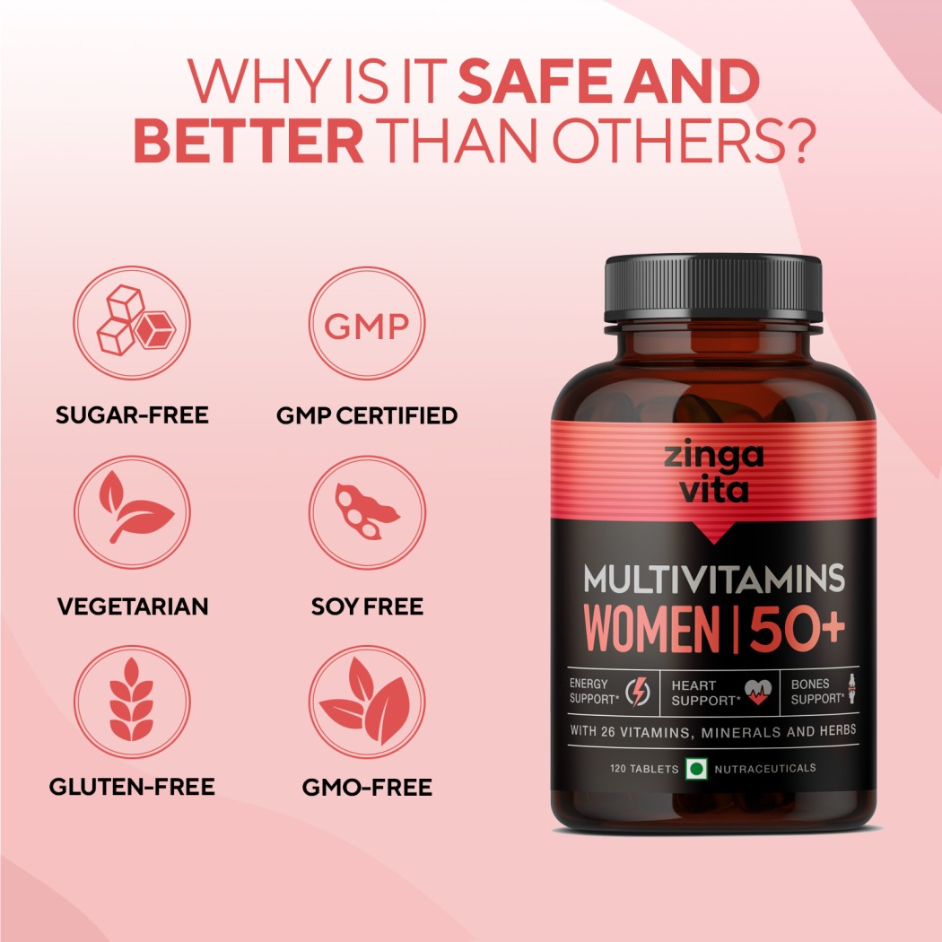 Scientifically Formulated For The 50+ Women: Make Your Wellness A Daily Habit With Zingavita Multivitamins That Is A Super Blend Of 26 Vitamins, Minerals, And Herbs, Formulated Specially For Women To Support Healthy, Active Lifestyle, Heart & Joint Health