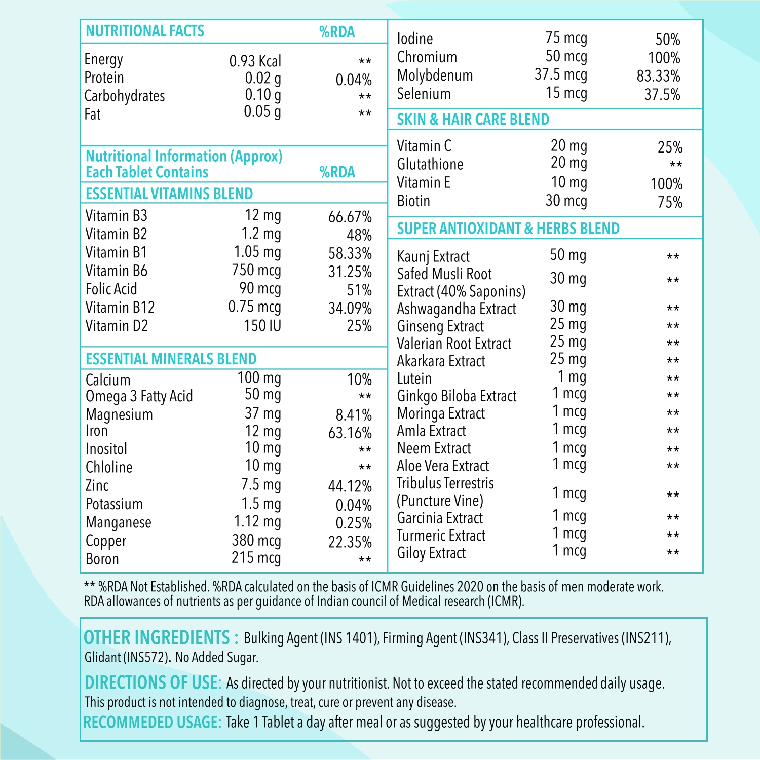 The Power-Packed Performance Of 45 Herbs, Vitamins, Minerals And Calcium Provides You All The Nourishment You Need. Start Your Day Strong With Multivitamins That Provides Overall Nourishment, Boost Your Immunity, Improve Stamina, Support Healthier Bones And Promote Glowing Skin