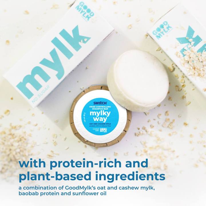 Rising humidity gives us a hu-mid life crisis with porous, frizzy hair thats prone to damage. Manage this frizz crisis with Goodmylks protein-rich cashew and oat mylk.