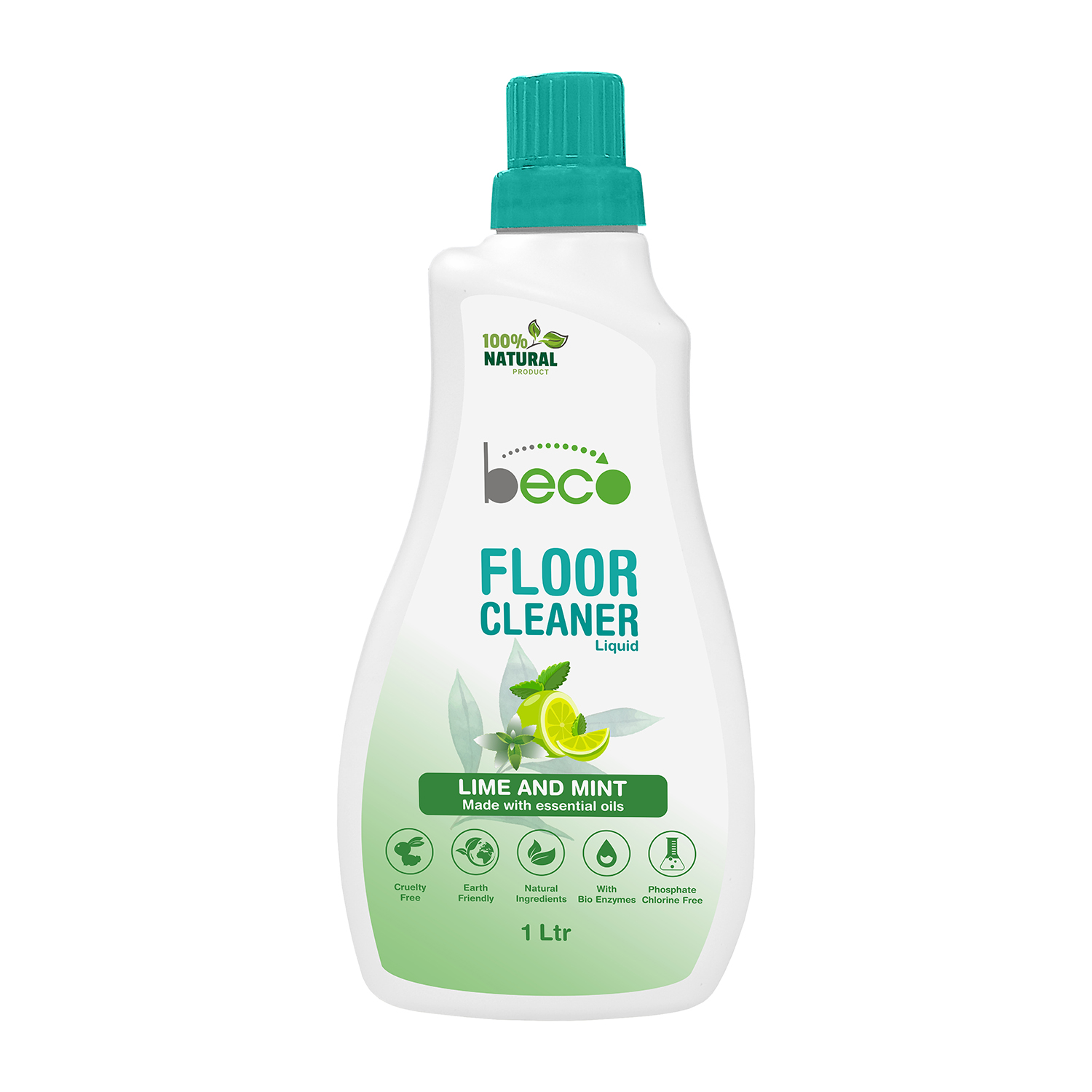 Beco Floor cleaner is a blended formula of natural and plant-based ingredients to clean all kinds of finishes. Lime is the hero cleaning agent that is antiseptic and acts as a natural bleach while the menthol in Mint leaves your home fresh as a garden. Its a powerful cleaner safe for a home with kids, pets and is allergy-free.