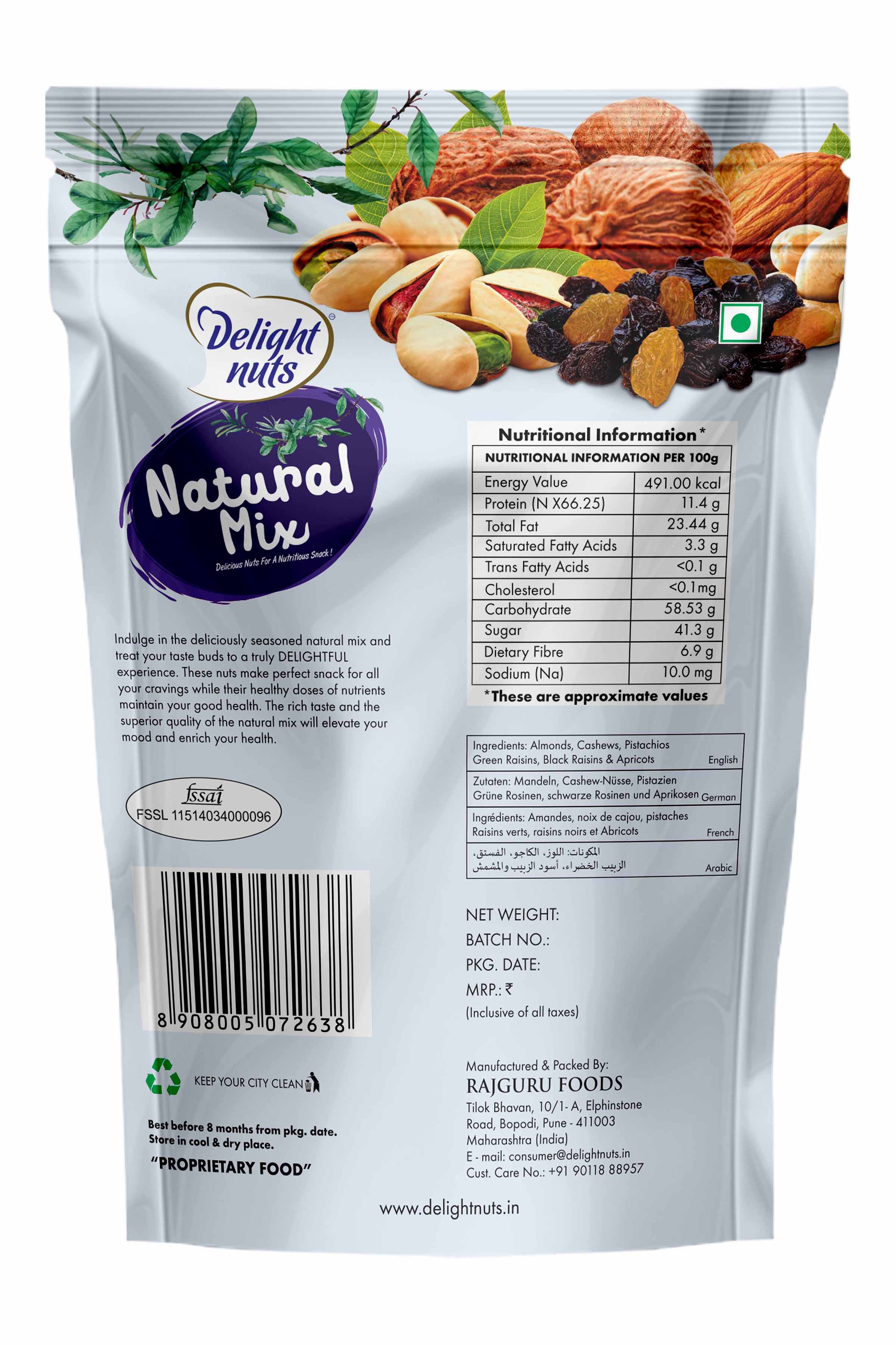 Indulge in the deliciously seasoned Delight Nuts Natural Mix and treat your taste buds to a truly delightful experience. These nuts make a perfect snack for all you cravings while their healthy doses of nutrients maintain your health. The rich taste and the Delight Nuts Natural mix will elevate your mood and enrich your health.