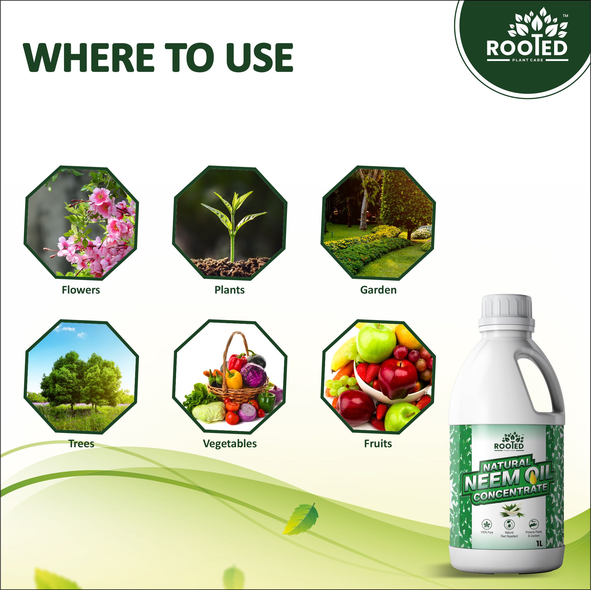 Neem Concentrate Oil is a natural and versatile product derived from the neem tree (Azadirachta indica), known for its potent properties and numerous benefits. Neem oil acts as a natural pesticide and fungicide, protecting plants from pests and diseases. It can be used to control common garden pests like aphids, whiteflies, and mealybugs, while also preventing fungal infections. Neem oil is an environmentally friendly alternative to chemical pesticides, making it a preferred choice for organic gardening.