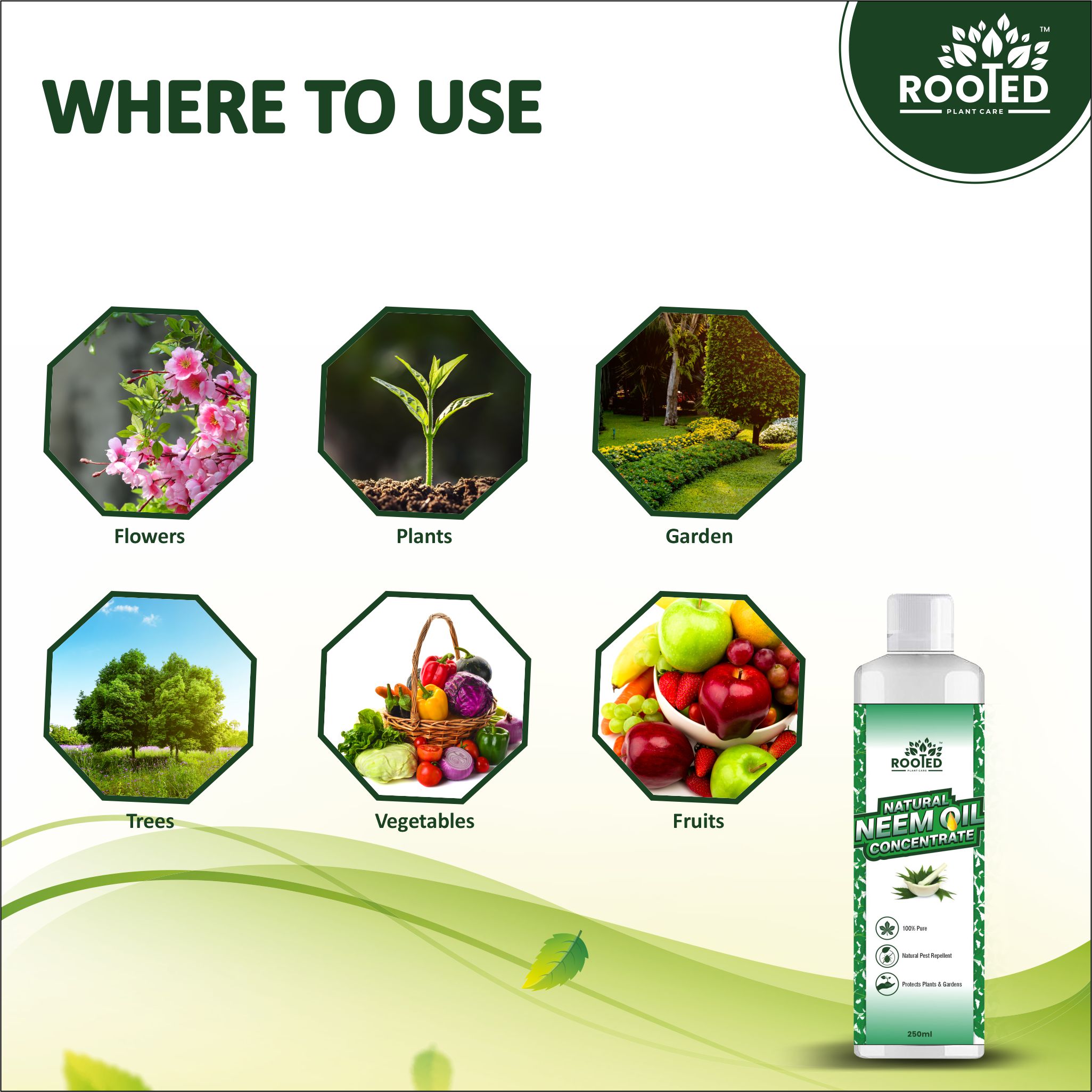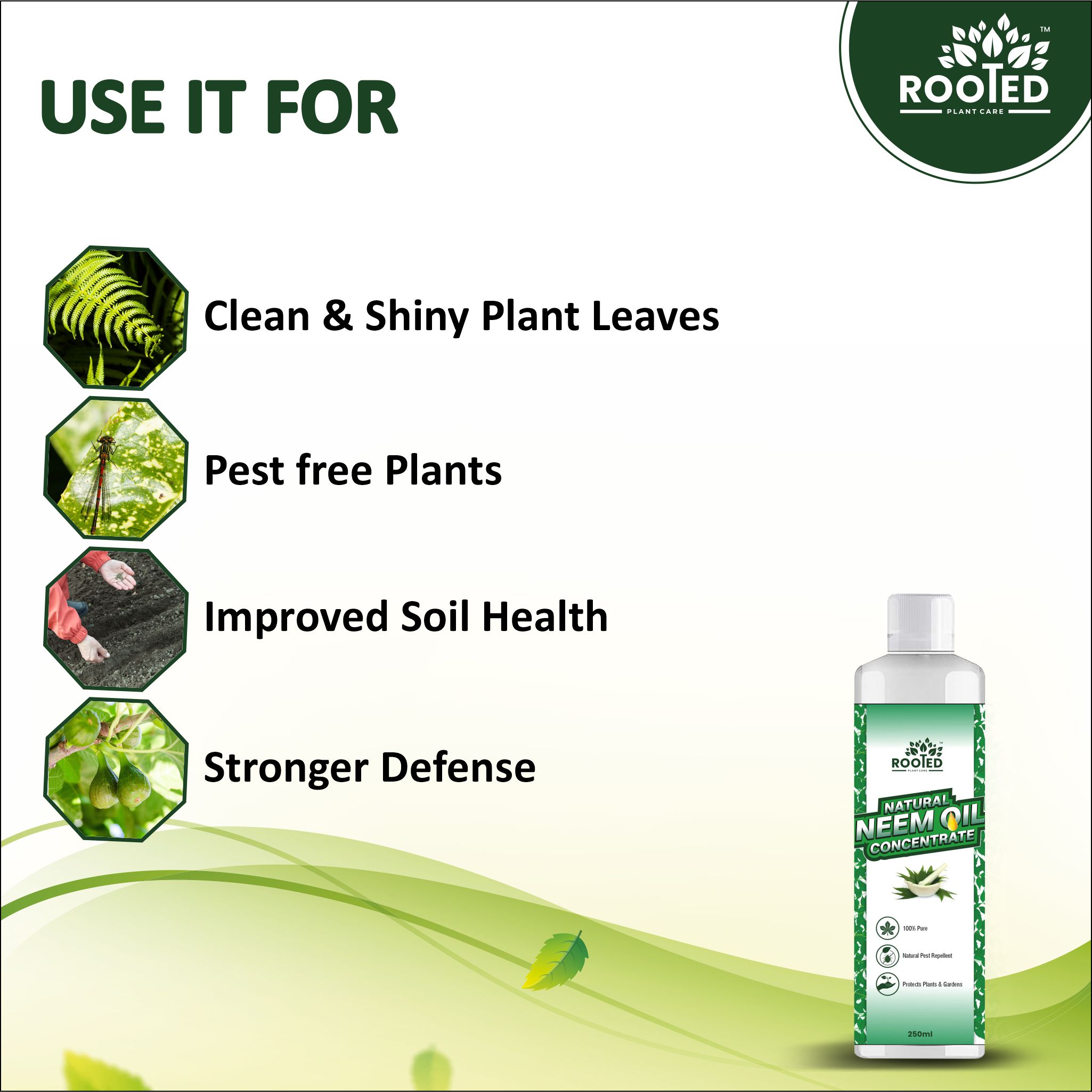 Neem Concentrate Oil is a natural and versatile product derived from the neem tree (Azadirachta indica), known for its potent properties and numerous benefits. Neem oil acts as a natural pesticide and fungicide, protecting plants from pests and diseases. It can be used to control common garden pests like aphids, whiteflies, and mealybugs, while also preventing fungal infections. Neem oil is an environmentally friendly alternative to chemical pesticides, making it a preferred choice for organic gardening.