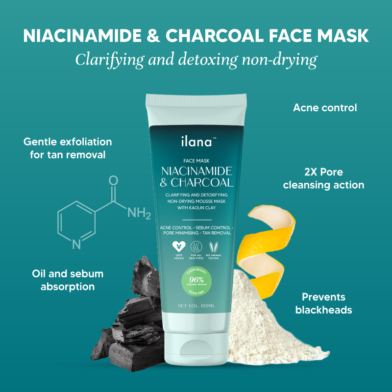Give your skin the ultimate detox it will love! This acne warrior powered with 3% Niacinamide and Kaolin clay will give you the acne free and clarified skin you deserve. This breakthrough non-drying mousse formulation will not dry up or strip the skin but will leave it soft, smooth plump! Clarify and detan your skin the natural way with Ilanas charcoal face mask specially made for oily and acne prone skin.