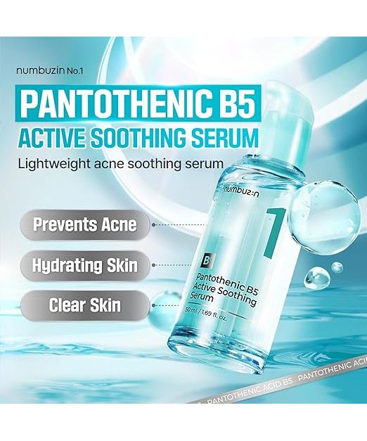 The No.1 Pantothenic B5 Active Soothing Serum is a multifunctional serum that instantly hydrates and controls excess oil to soothe and prevent breakouts. Formulated with micro-pantothenic acid that manages your skin's oil balance to calm skin 24x7, beta-glucan that soothes and strengthens damaged skin barriers, and patented ingredient Soothing Booster 12 Complex to reduce excess oil. It also contains hydrating ingredients like trehalose, sodium hyaluronate, and hyaluronic acid.