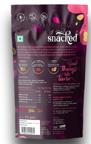 This product is the ultimate immunity boosting munchy. It is a mix of nuts and seeds with a sweet undertone. Almonds dipped in honey, with a mix of butterscotch - balanced with a slight sour taste of cranberries makes this the perfect summer snack! what's so healthy about it?immunity: this superfood mix is going to help you fight off all summer-winter-monsoon flus. Indulge in one portion a day to get your daily dose of vit c, antioxidants!